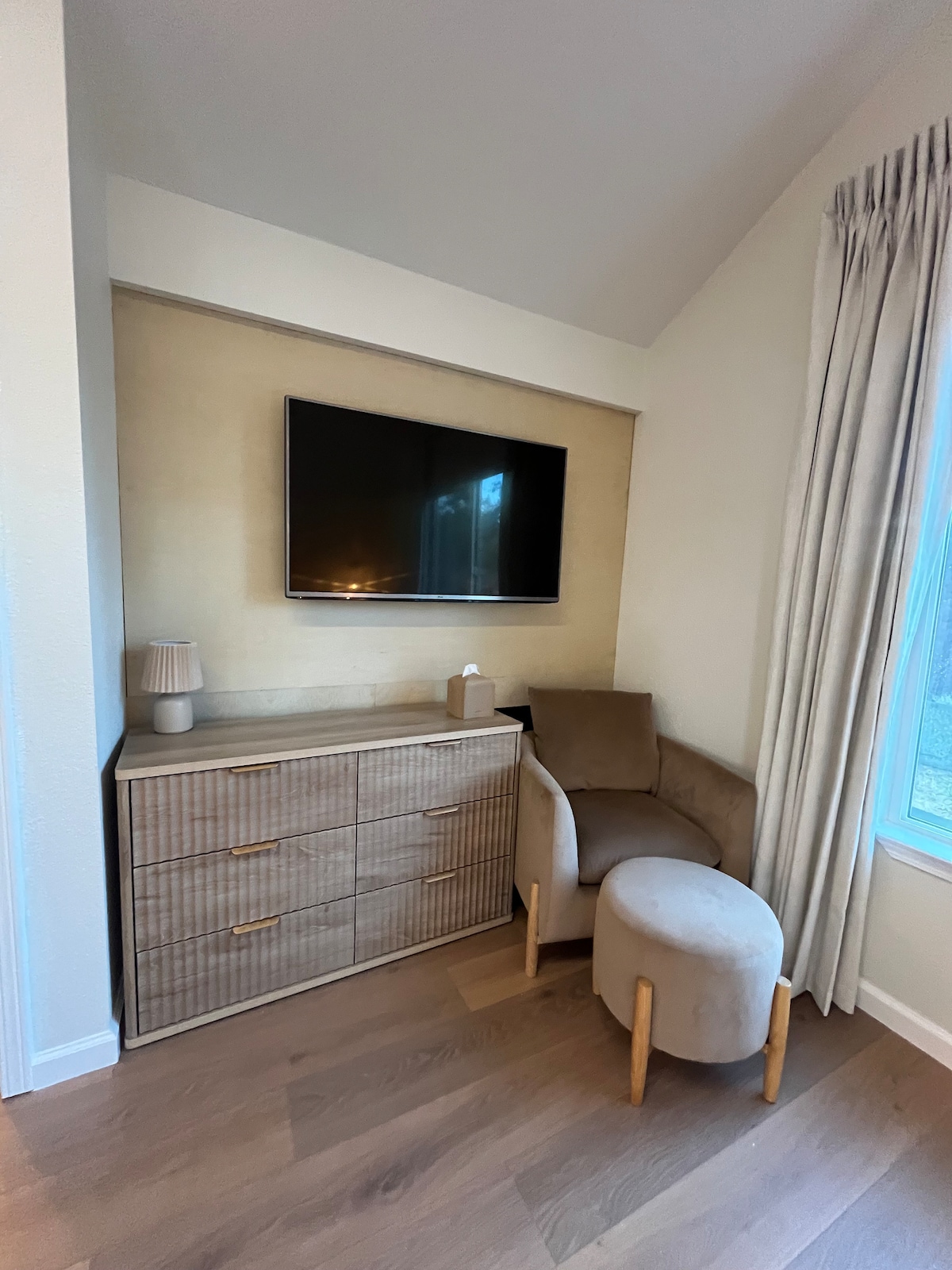 Sleek modern lines. Serene neutral tones. Fresh contemporary art. Your Urban Escape Studio at Art House is designed for chic city life in the heart of wine country. Throw open your balcony doors for the morning downtown hum or soft evening breezes. Unwind with a streaming movie on your smart TV and hot popcorn from your own kitchen. With a lush king bed, queen sofa sleeper, desk, dining table, and fully appointed kitchen, you're set for a night, a week, or more.