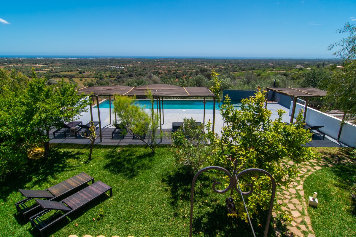 Pool with spectacular views and sun loungers, gardens, games for children, barbecue, terraces