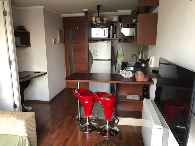 Depto Estudio 2 personas Las Condes offers accommodations in Santiago, one mile from Parque Araucano and 2.5 miles from Costanera Center. This apartment provides air-conditioned accommodations with a balcony. Private parking can be arranged at an extra charge. With free Wifi, this 1-bedroom apartment features a cable flat-screen TV and a kitchenette with a microwave and toaster. Towels and bed linen are available in the apartment. Additional in-room amenities include fruit. Parque Bicentenario Santiago is 2.6 miles from the apartment, while Patio Bellavista is 3.8 miles from the property. Santiago International Airport is 16 miles away.