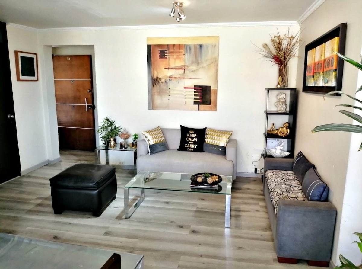 Nice bedroom and private bathroom exclusively for 1 guest in a cozy and quiet apartment that I also live in. Very close to parks, restaurants, major companies, and the Arauco Park, Open Kennedy, and Apumanque Malls. Close to Manquehue and Escuela Militar Metro stations, pharmacies, a mini-market, tea rooms, banks, etc. Excellent location and very safe.