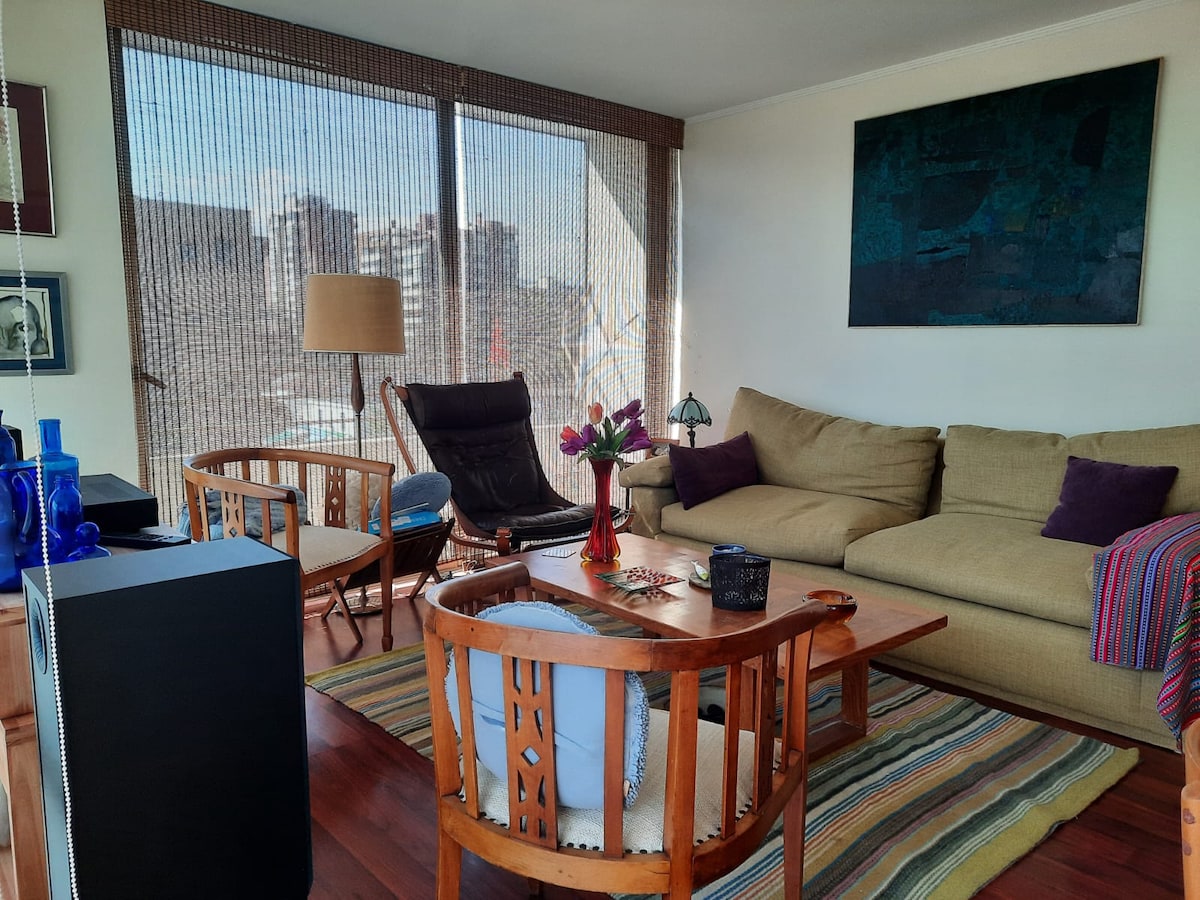 Nice bedroom and private bathroom exclusively for 1 guest in an apartment that I also live in. Very cozy, bright and quiet. You also have the living-dining room, terrace, kitchen and washing machine available. Very close to Mall Parque Arauco, Open Kennedy and Apumanque, as well as Metro Escuela Militar and Manquehue stations, pharmacy, mini-market, tea rooms, etc. Excellent location and very safe.