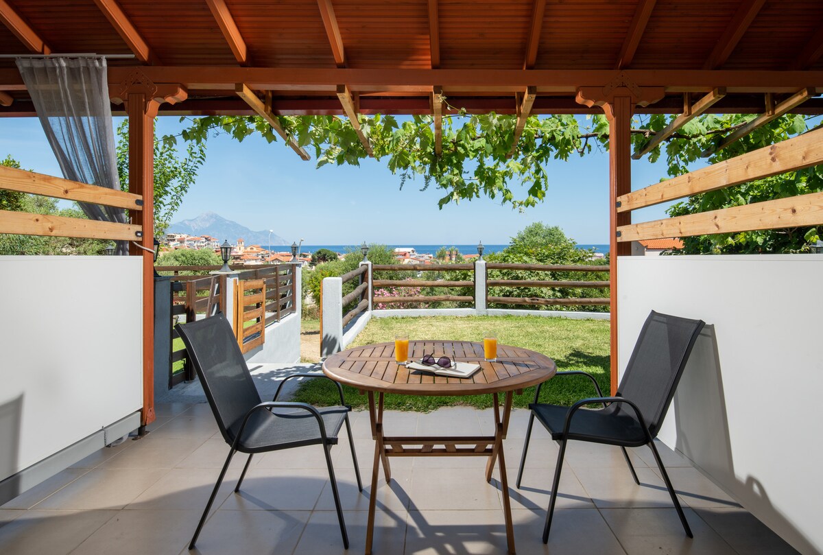 Relax by taking a unique and peaceful getaway. EVELEN SARTI is waiting for you for a peaceful and hospitable vacation. At a distance of 5 minutes (on foot) from the sea and an unsurpassed view, you will have the vacation you dreamed of.