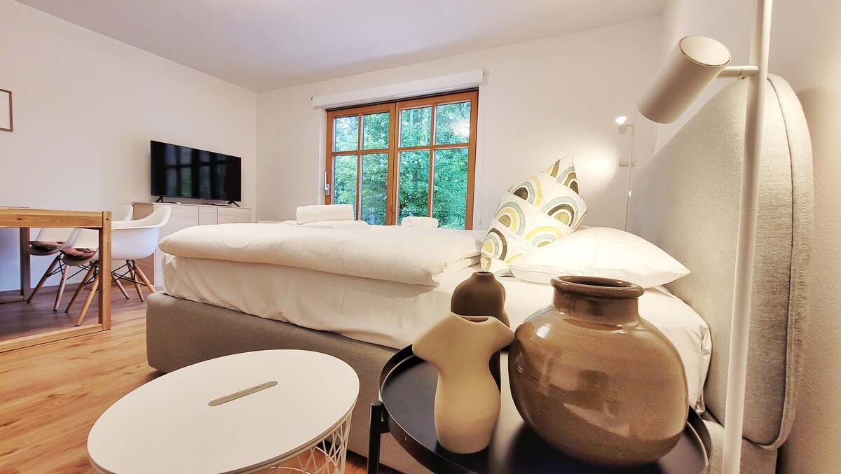 My accommodation offers 1 double bedroom on the 1st floor with large balcony, sofa area and separate bathroom/toilet. It is close to the lake (100 m). You will appreciate it for its comfort, location, calm and brightness. It is good for couples, solo and family travelers (4 other double rooms available on the same floor). At Hotel Terofal, right next door, you can have a very good "German" breakfast for €25/person (from 8:25 a.m.). We'll be happy to host you!