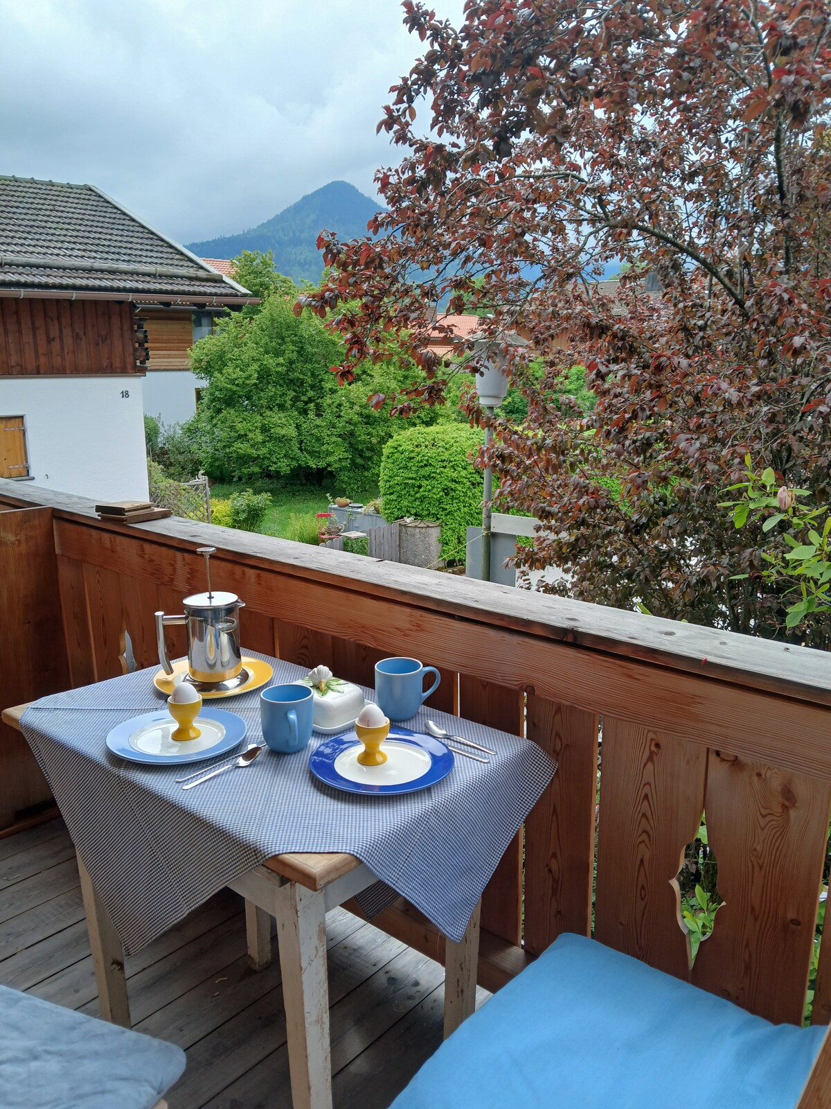 The 2-room apartment has a bathroom with toilet and shower and its own kitchen. This is among other things well equipped with stove, microwave, coffee maker, kettle and fridge and freezer. The bedroom and the living room with a real wood parquet and are fitted with handmade rustic farmhouse furniture. The spacious east-facing balcony is equipped with a table and (deck) chairs and invites with its picturesque view of the lake, mountains and church for sunny leisure hours. The pleasant tranquility within the apartment is only - depending on your feelings - from the church bells of the directly adjacent St. Sixtus Parish interrupted. In all areas, and in the apartment is non-smoking. The in. 3 Stock located apartment is only accessible via the staircase (there is no lift!). Sheets and towels are provided.