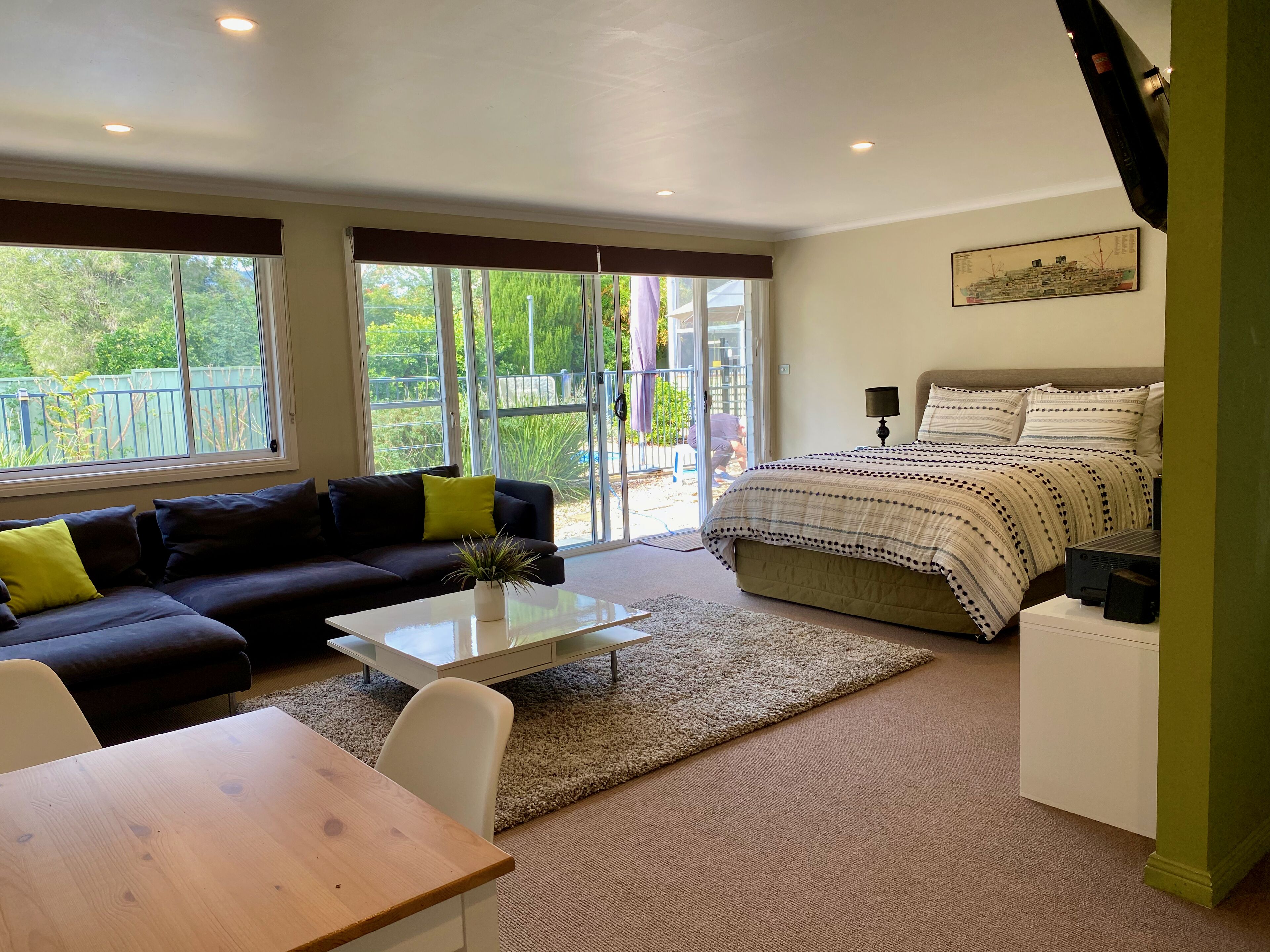 Luxury 1 bedroom open plan studio apartment. Set in a quiet neighbourhood 4km from town centre 1km to Scone Race Course.