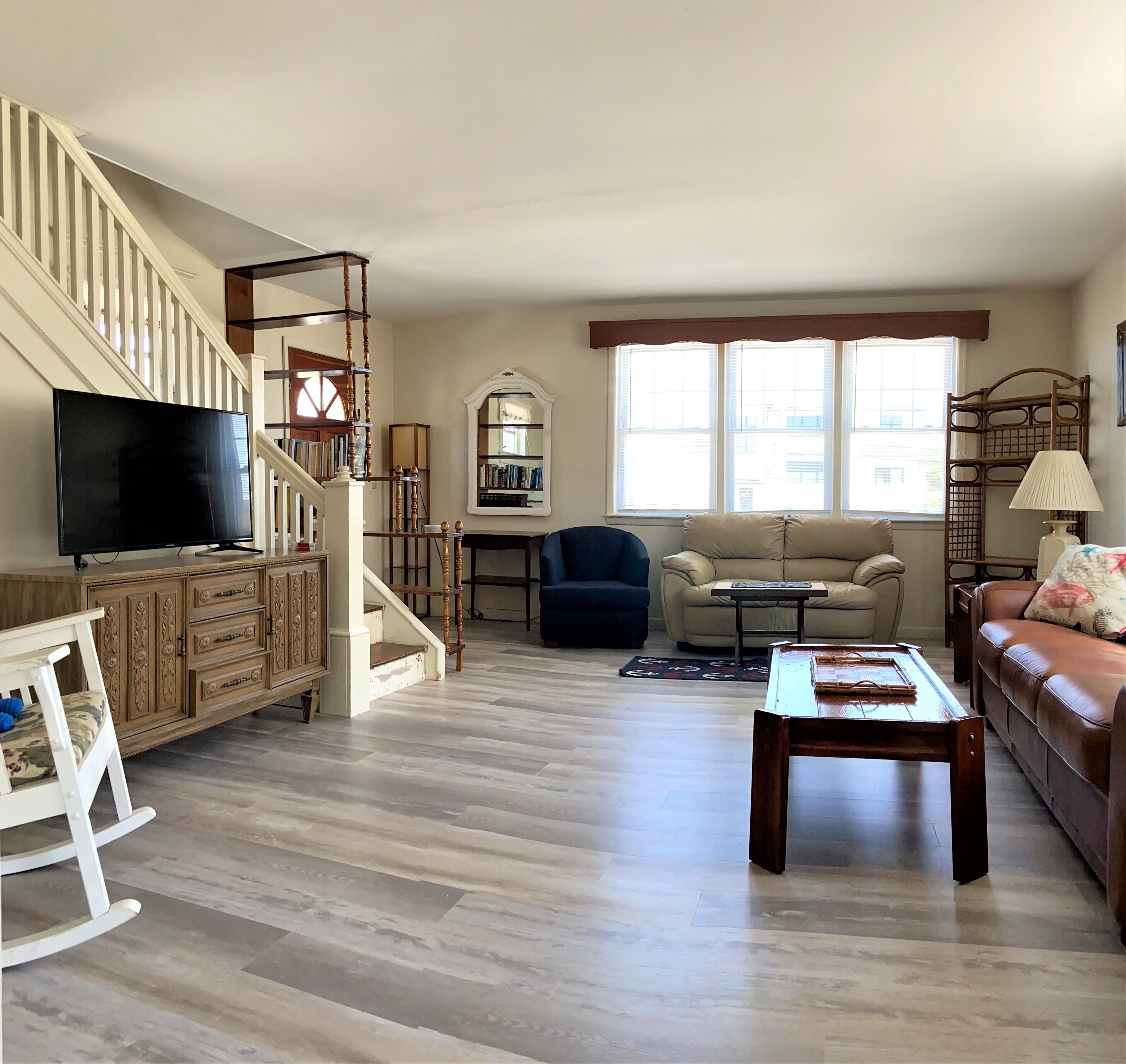 INDOOR LIVING: Smart TV w/ cable, ceiling fans, video library, nautical decor