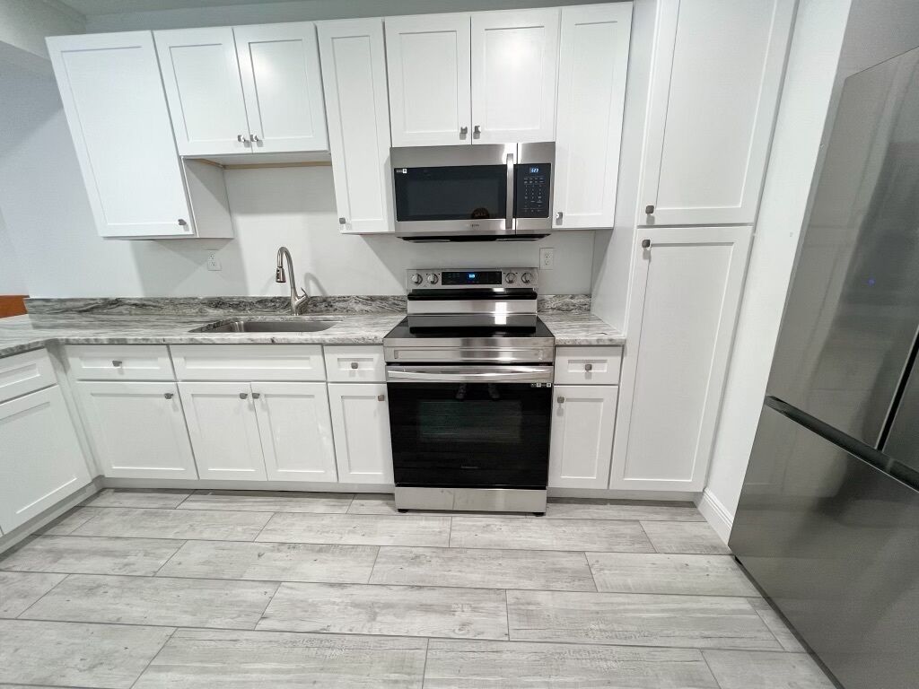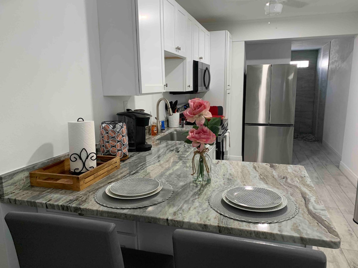 Modern Kitchen: A fully renovated kitchen perfect for staying in and cooking your favorite meals!