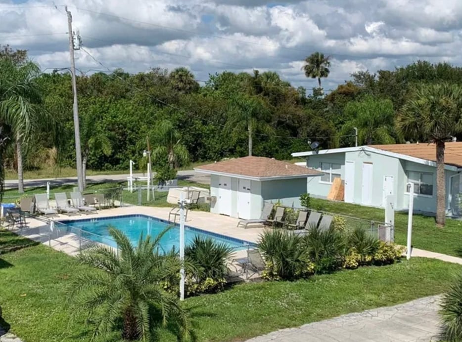 Single Unit, which includes a Large Bedroom with two single beds, and a full bathroom with a shower and toilet. Has a Private Entrance. Access to the Sebastian River and a shared covered porch and pool to enjoy.