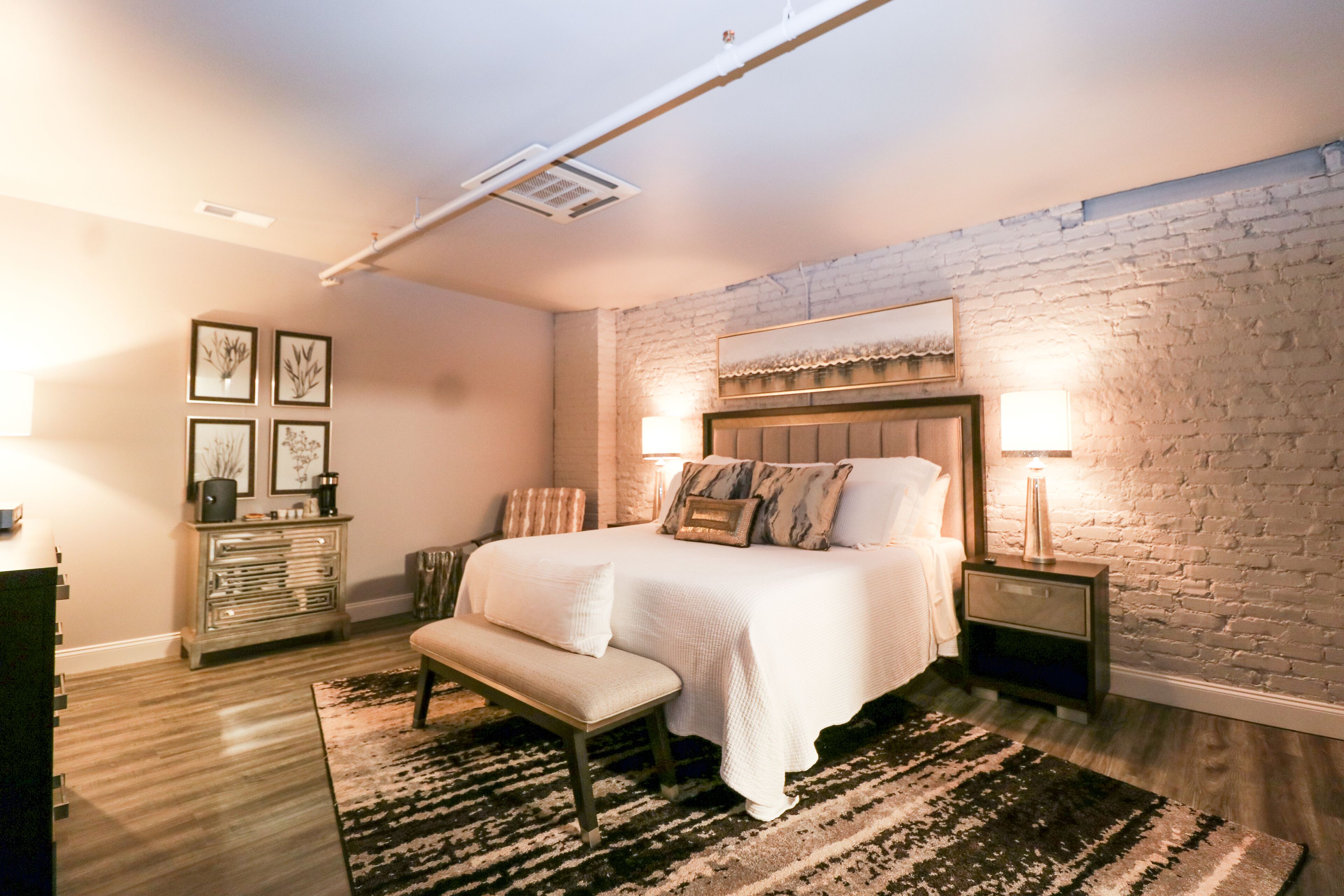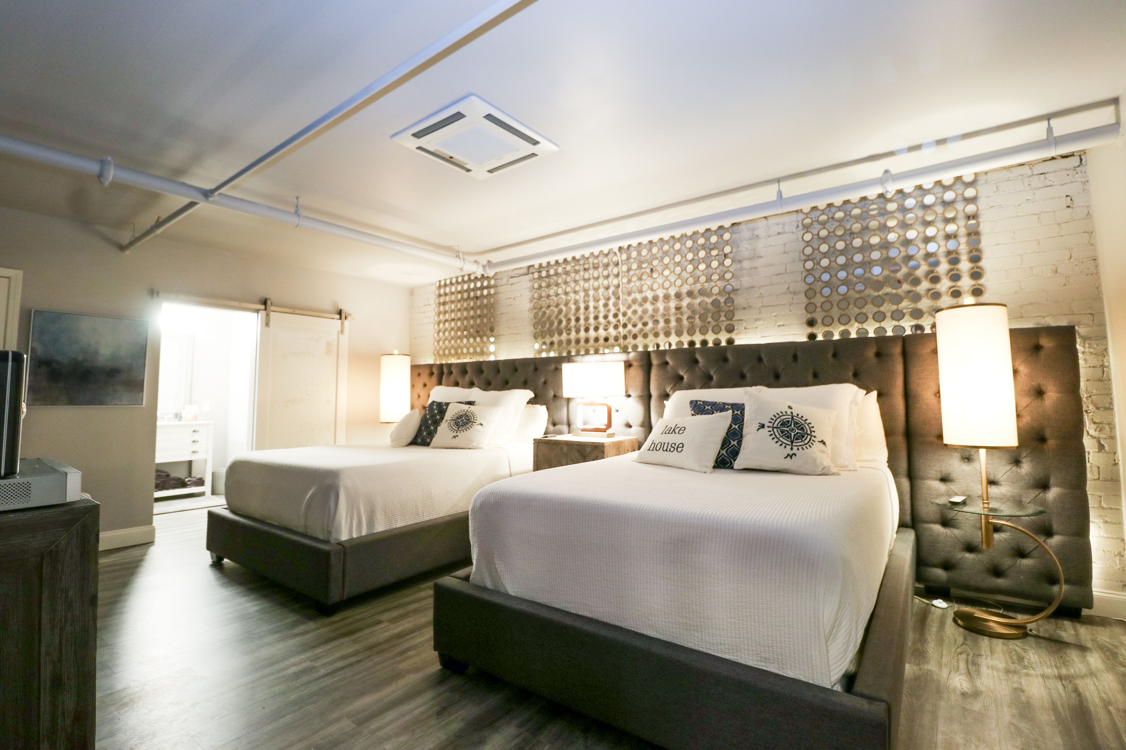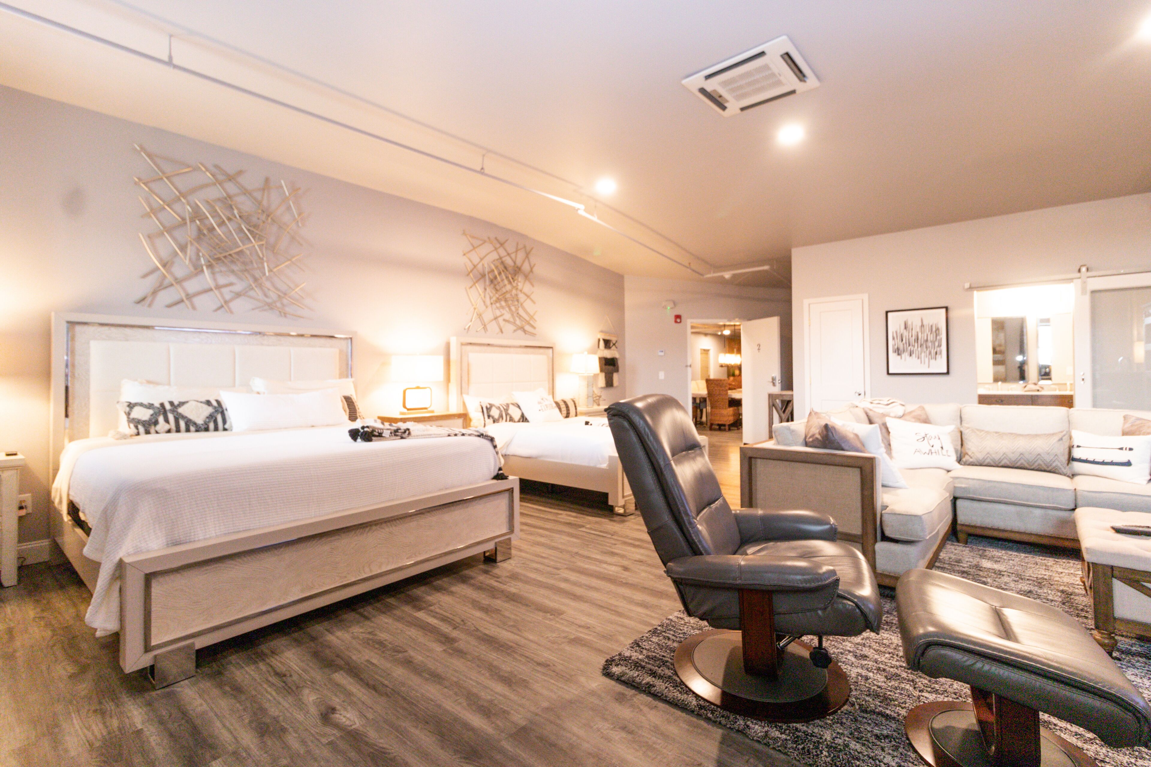 Welcome to the heart of downtown Seneca, South Carolina. Formerly the Richardson Theatre in the late 50s, our building underwent an expansive renovation to create a charming, 6 bedroom boutique hotel. Each of our six private rooms are connected with a common area for dining and lounging. Each room features luxury furnishings and bedding, a private bath with a state of the art shower, and 65” Flat Screens, with all your favorite channels.