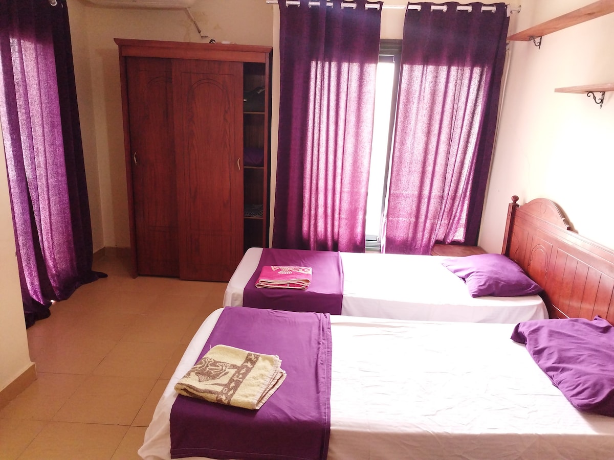 Stay comfortably in Sharm el Sheik at this 2-bedroom apartment. The bedrooms feature a nice king bed and a twin bed, perfect for a wonderful night's sleep. With amenities like a washing machine, WiFi, and AC, guests can relax and unwind. The bathroom includes a shower and bidet for added convenience. Enjoy your time in Sharm el Sheik at our cozy apartment.