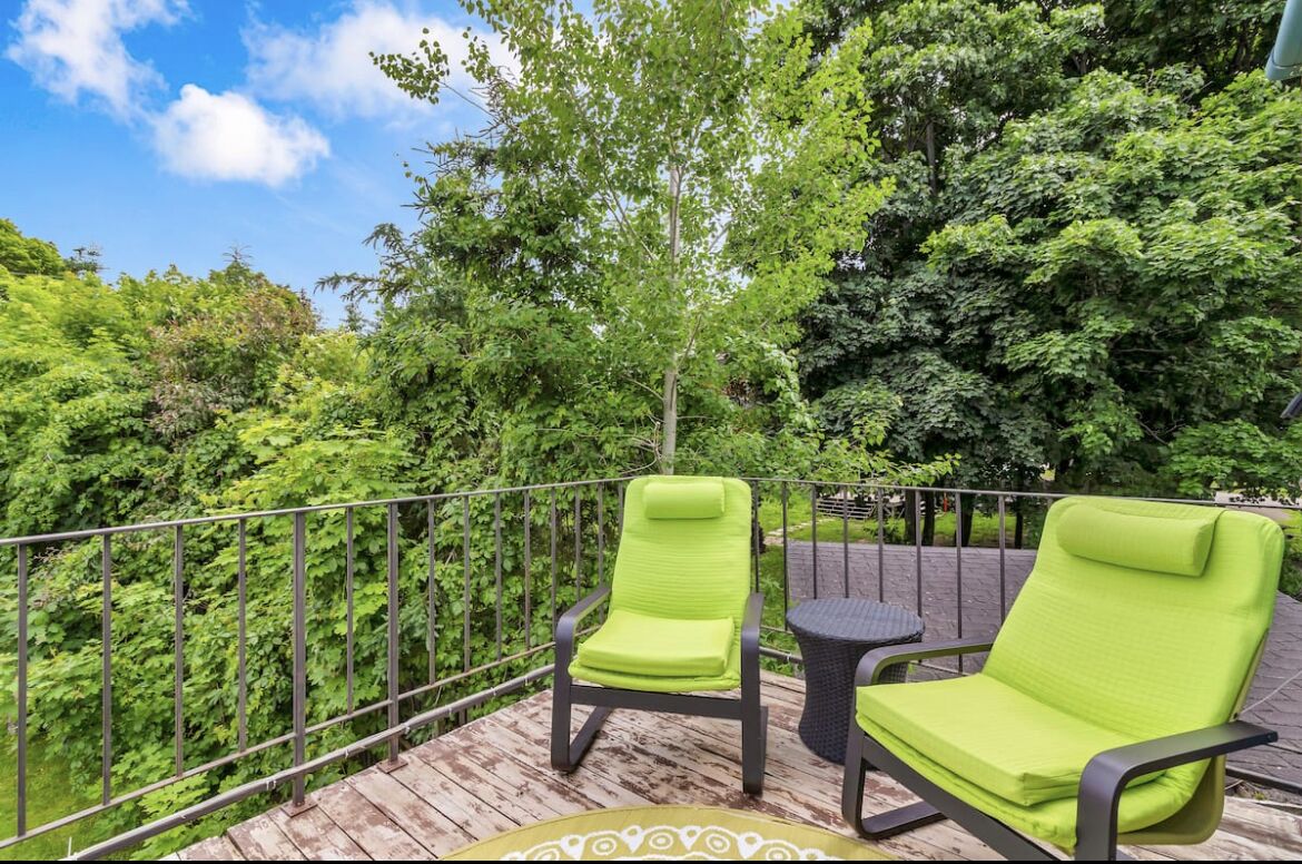 Loft area, private 2e story balcony. Private Backyard with chairs.
