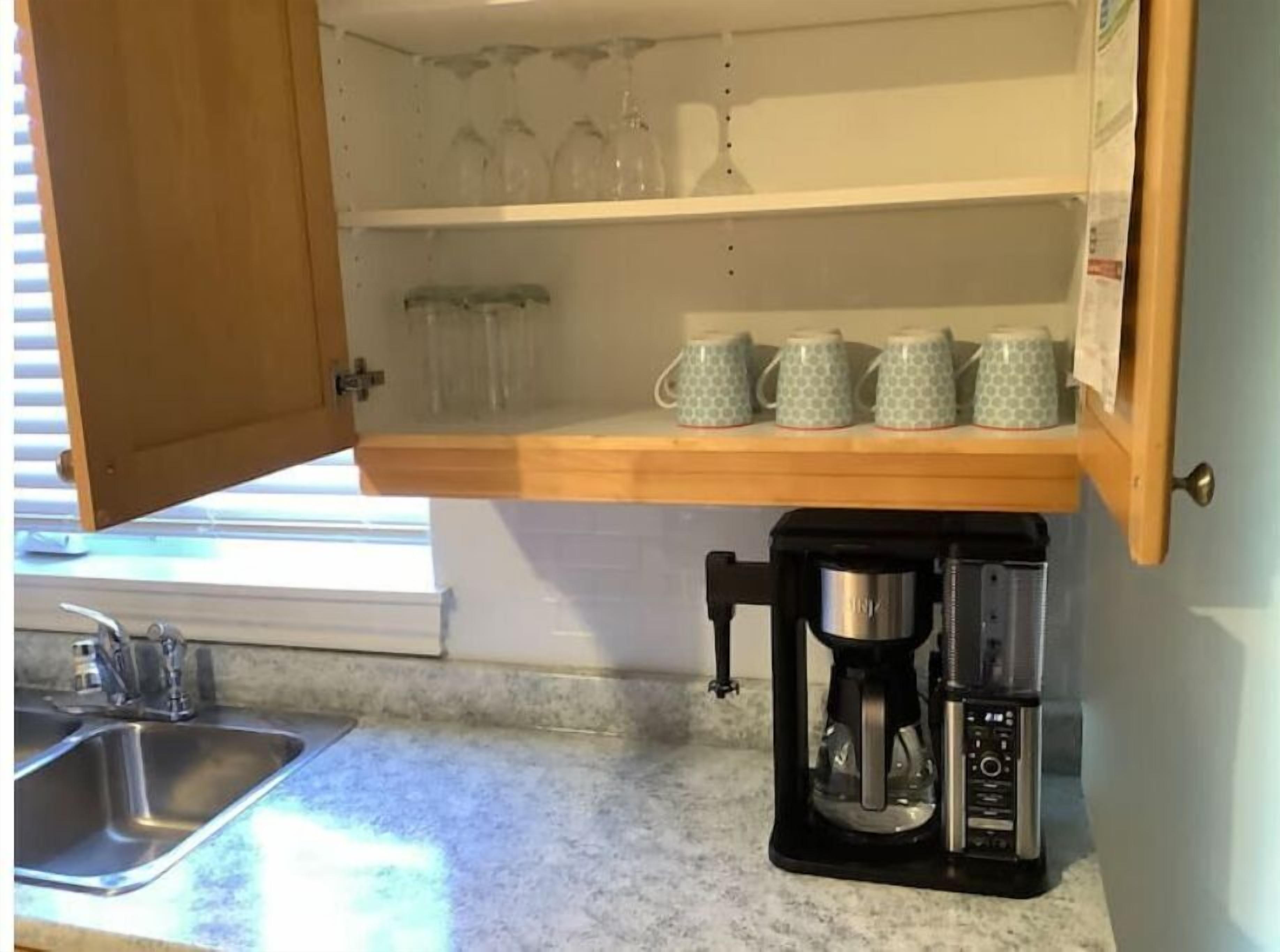 - Fully stocked coffee bar
