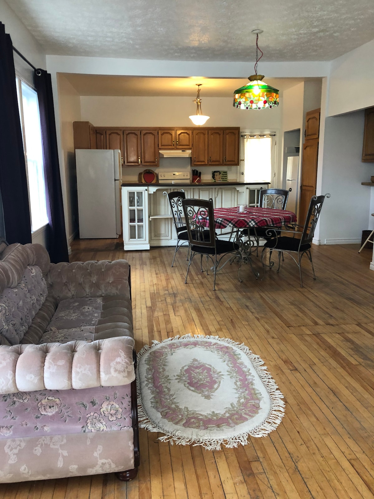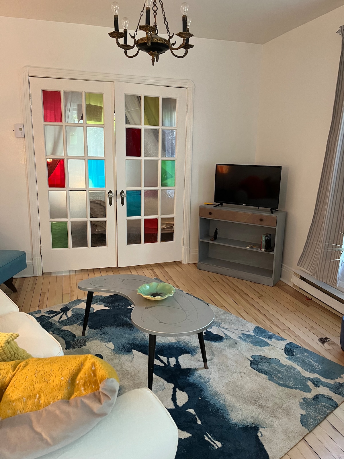 Whimsical ,colourful and bright semi detached in the Old North neighbourhood of Sherbrooke. Front porch and backyard access with fire pit . A home away from home! A 4 1/2 with a fully equipped kitchen 2 bedrooms , dining area and living room all decorated with a touch of whimsy! Parking is free and plentiful on the property. Small pets under 15 lbs welcomed .