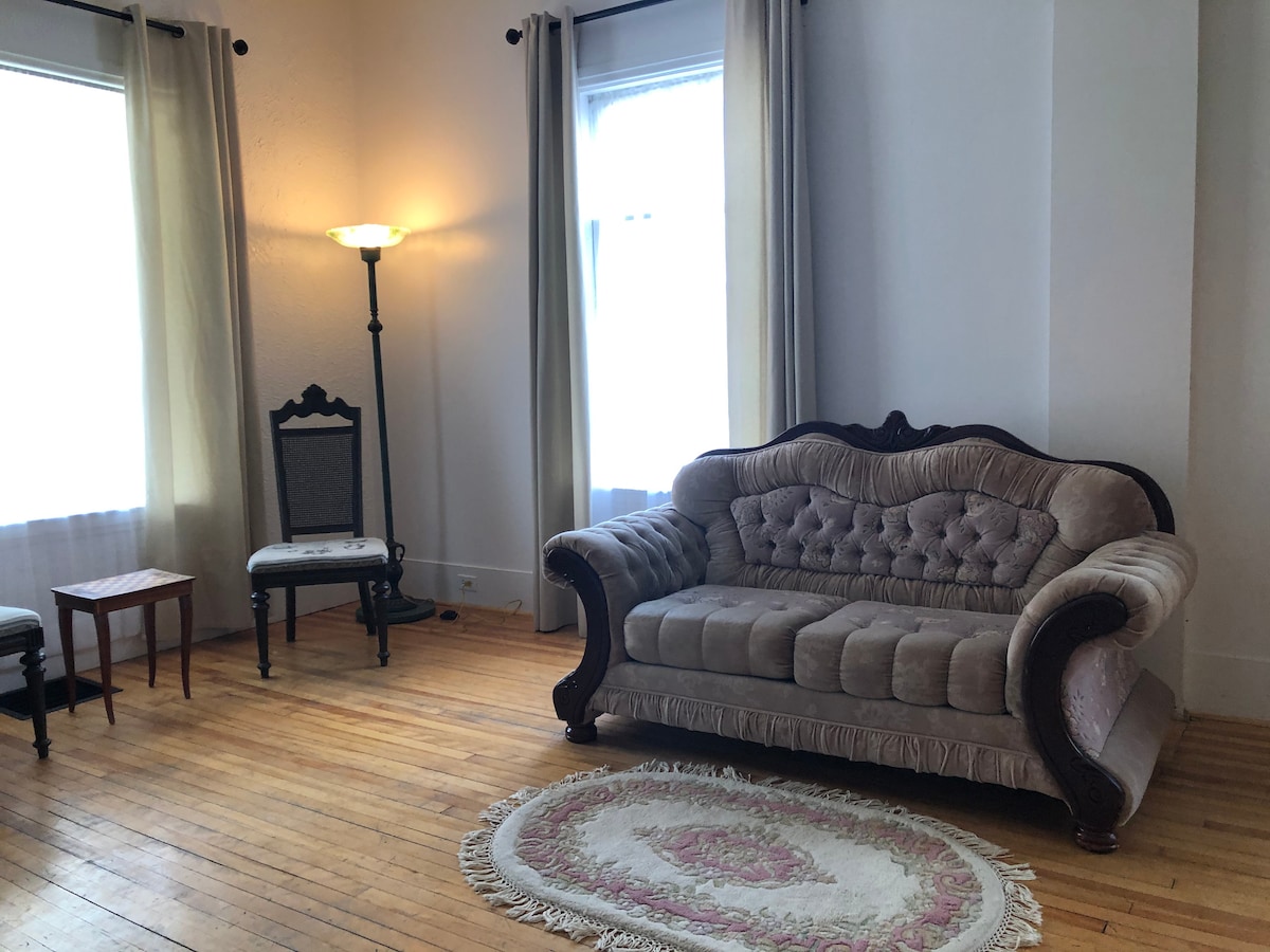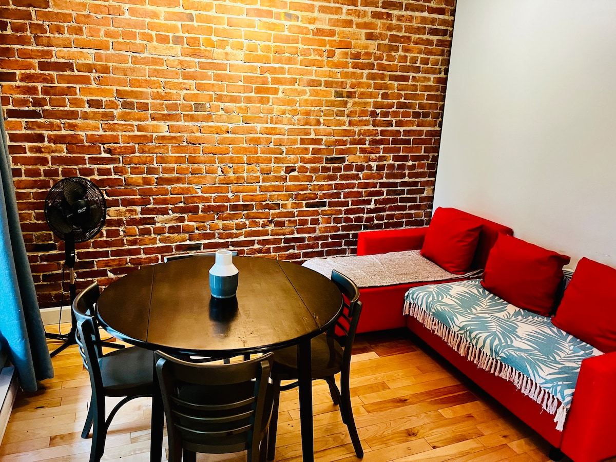 1 bedroom apartment with dining room, living room and kitchen. Downtown, near all the services. Minimum 31 day stay. 6'3 ceiling