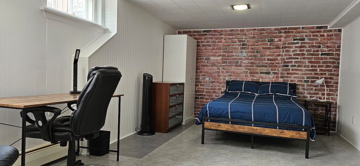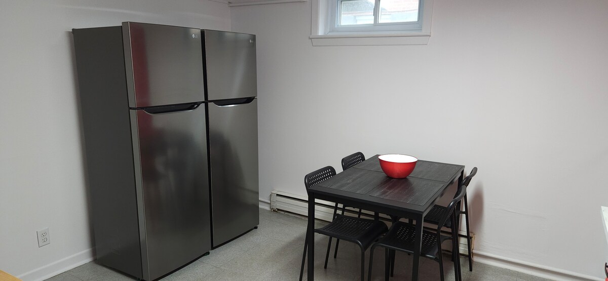 Renovated and newly furnished private A room located 1.5 KM from the Uni de Sherbrooke. No smoking without pets. A total of 2 bedrooms rented separately in the basement of a triplex with independent entrance. Designed for studies and a lounge area including 50 ”TV. Kitchen, bathroom, laundry room shared between the 2 occupants. Ideal for students - access to several buses to UDES, Bishop, Cégep, Chus and all directions. UdeS and shops within walking distance. 31 days stay min.