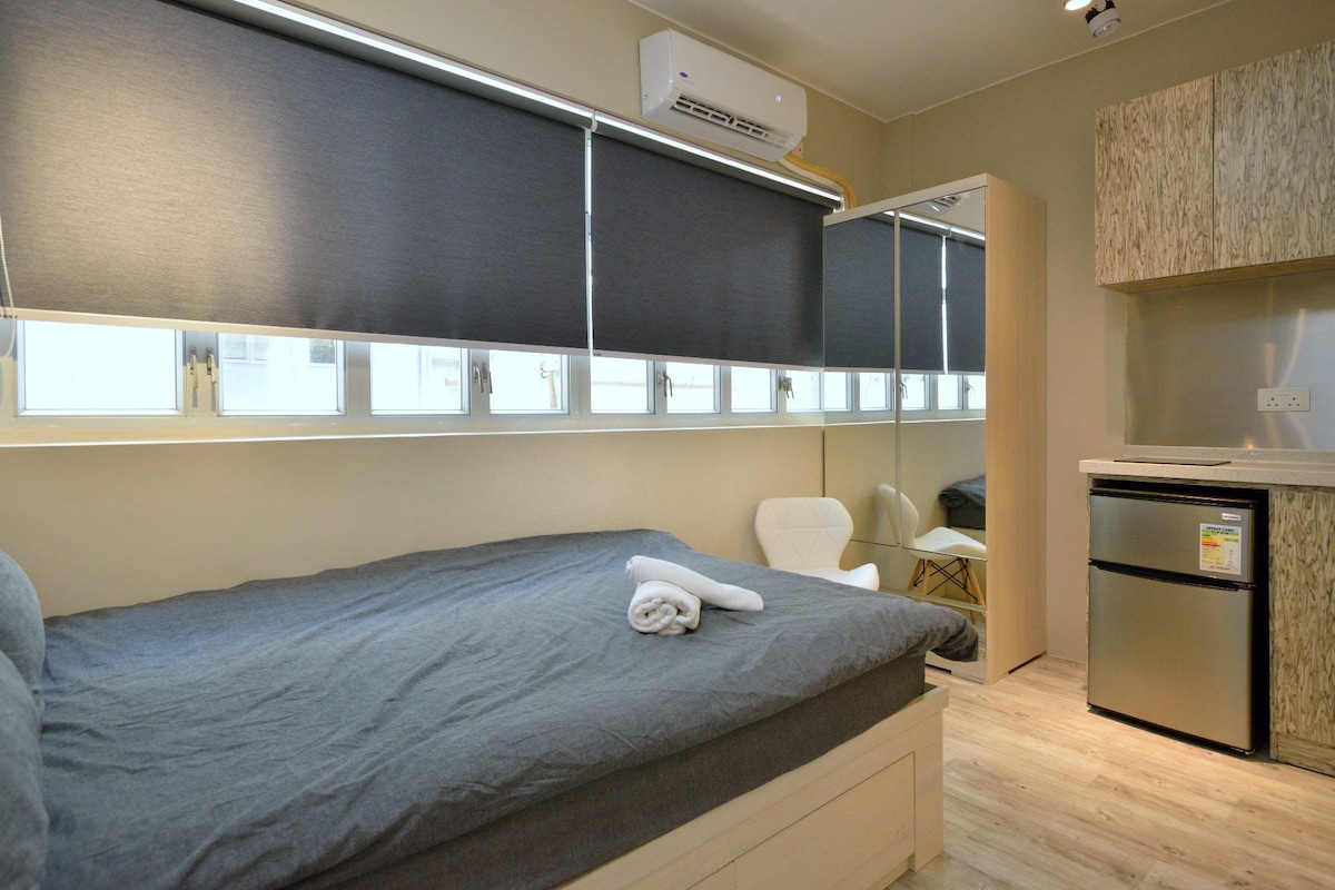 Recently renovated studio apartment right in the heart of HK's Sheung Wan District. The apartment is close to all the hottest spots in town; five minutes walk to Lan Kwai Fong, close to all the latest restaurants, this is a spot not to be missed! The apartment is located on the first floor of a walk up building and features weekly cleaning, high speed internet, and weekly linen and towel change.