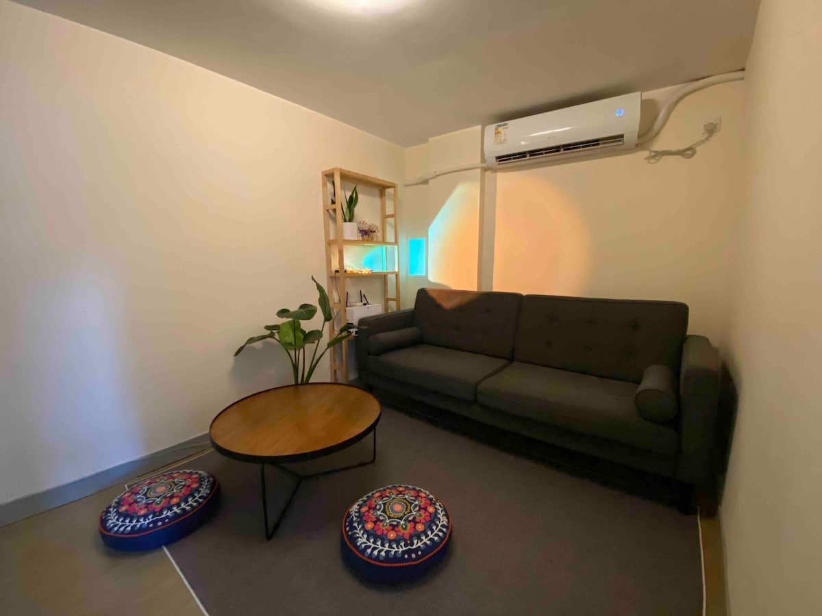 While the guest bedroom may not be fully furnished yet, it does offer a comfortable double bed and an air conditioning unit to ensure a pleasant stay. Rest assured, the living room is spacious and ready for you to enjoy. Feel free to make yourself at home in this inviting common area, where you can relax and unwind.