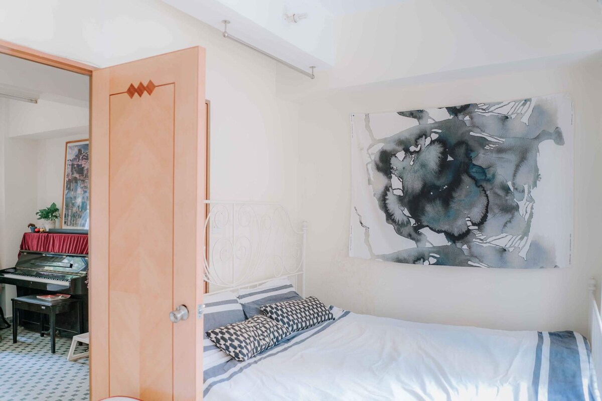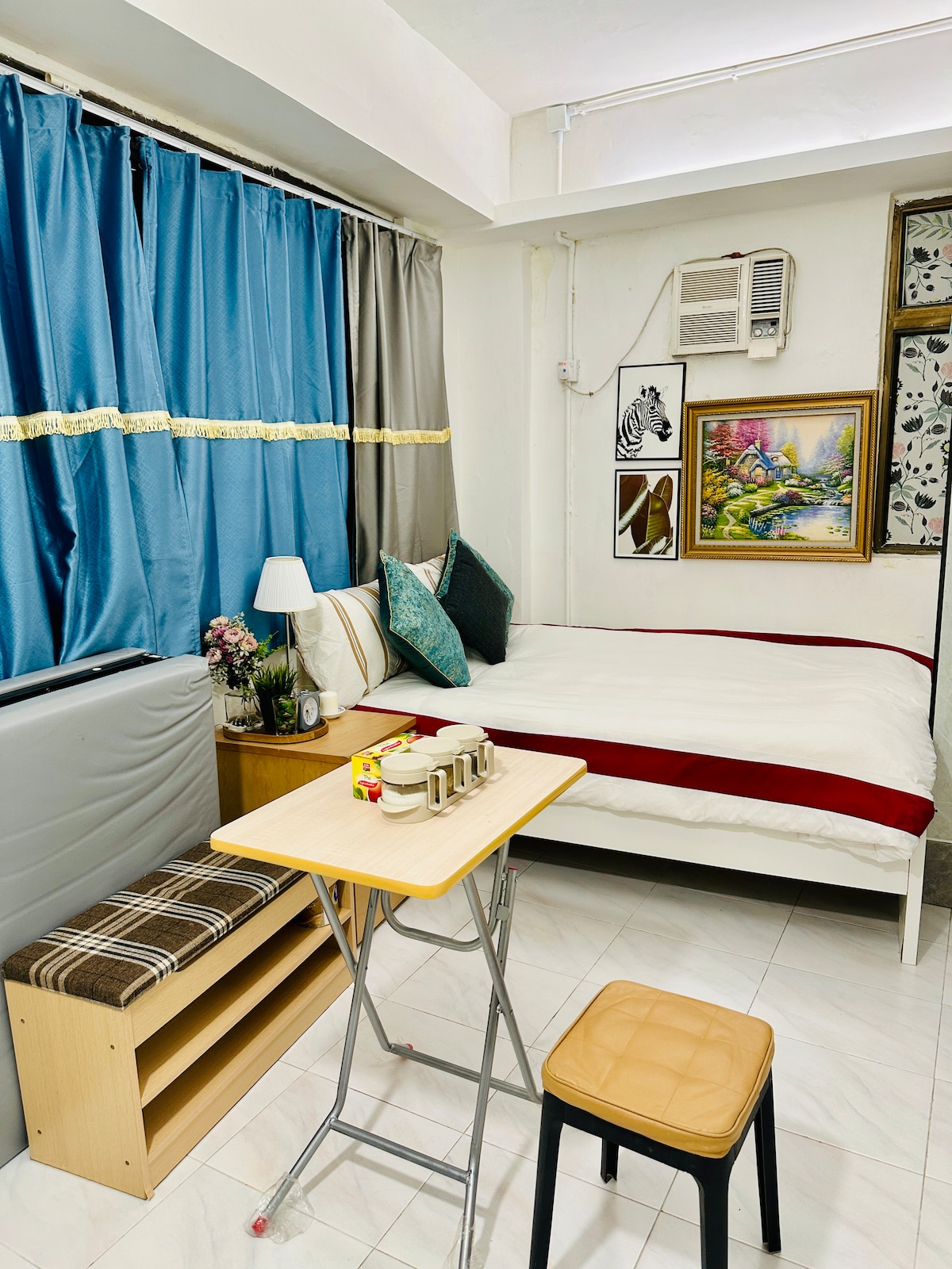 This unique place has a style all its own. Beautifully decorated, located on 5th Floor of a walk-up building with private rooftop on 6F in the heart of Hong Kong city, this gorgeous pied de terre offers a private bedroom, shared bathroom, use of open plan kitchen with oven, living and dining room, Netflix and Wifi. A Workspace can be provided. Unlimited tea and coffee and a small continental breakfast provided. Cat lovers a must be! Welcome!
