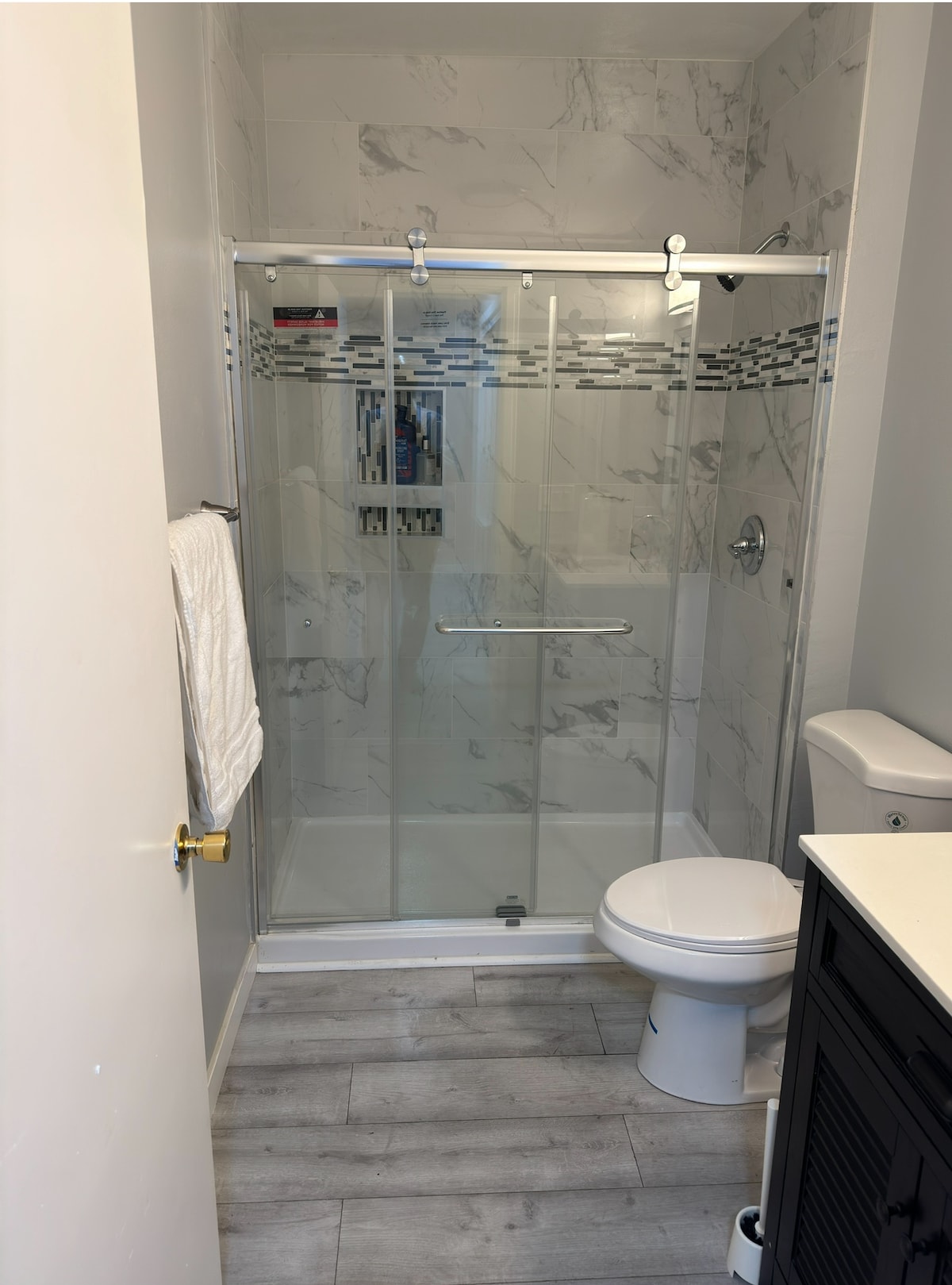 Each of our two bathrooms features a shower. The elegant, well-appointed bathrooms are a haven of peace and convenience. It has everything you need for a restful stay, so you don't have to worry about bringing any toiletries.