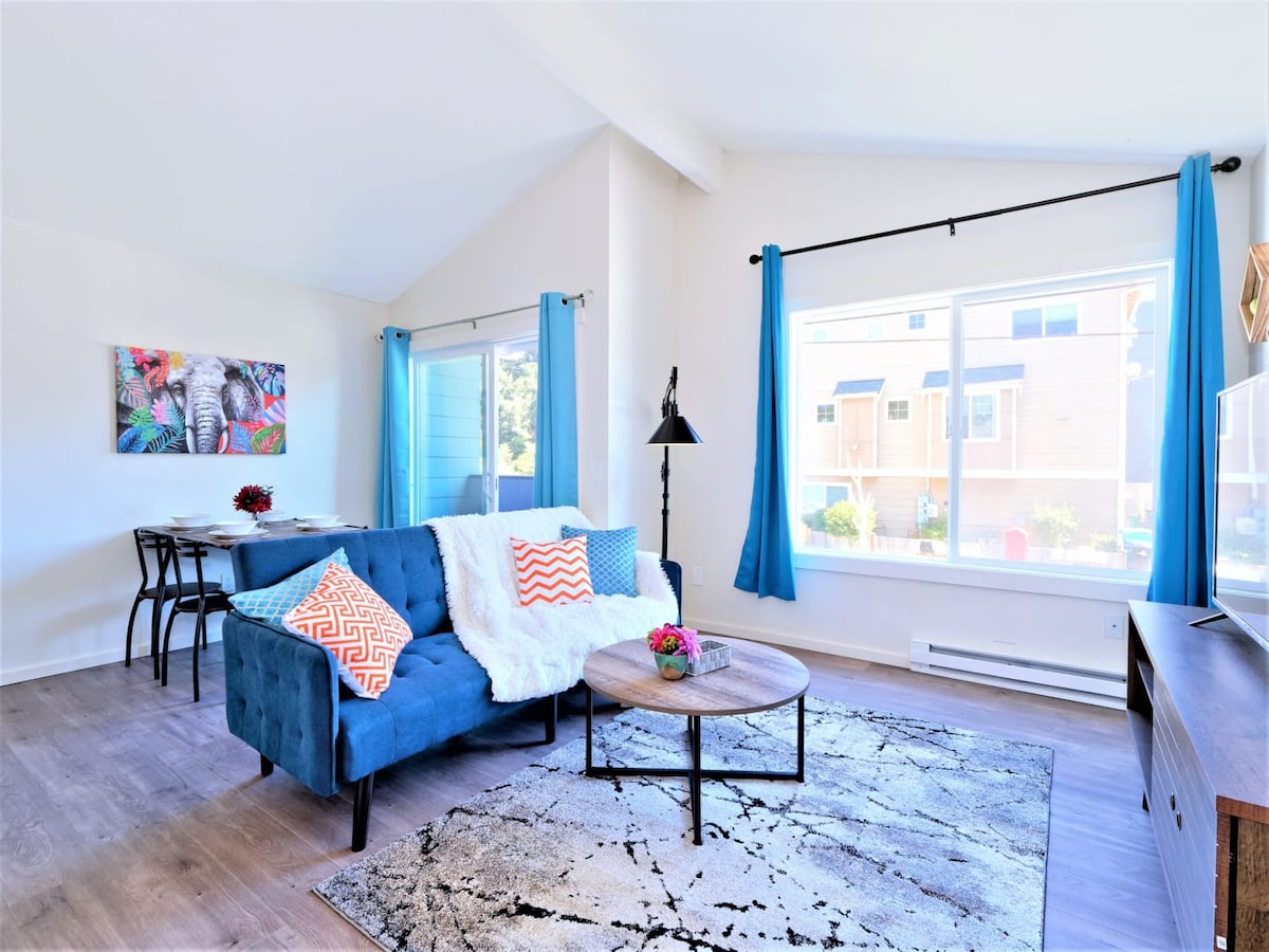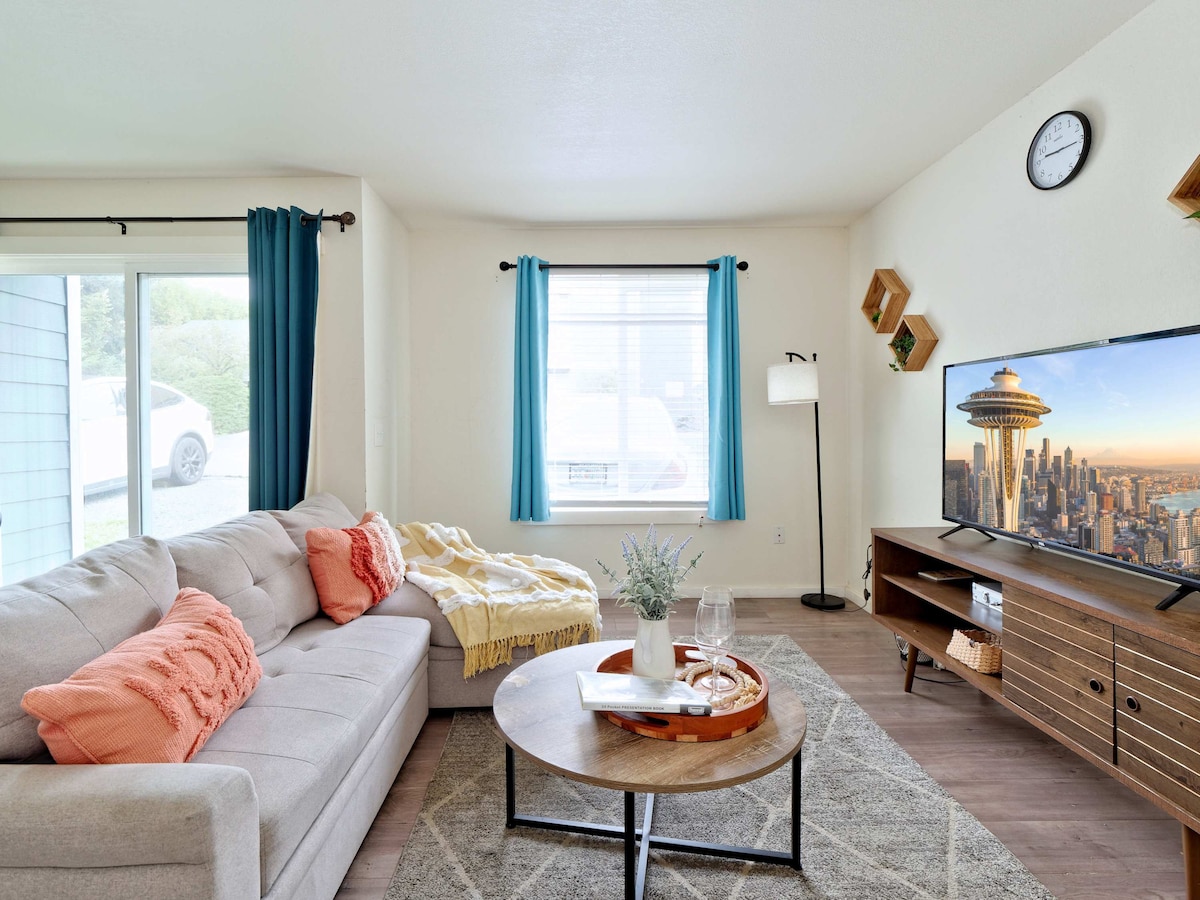 The space is perfect for relaxing after a day exploring the Seattle area or working remotely. Large windows let in great natural light, and the open layout gives the unit a spacious yet cozy feel. Enjoy your morning coffee in the dining nook, stream your favorite shows, or cook a meal at home with everything you need at your fingertips.