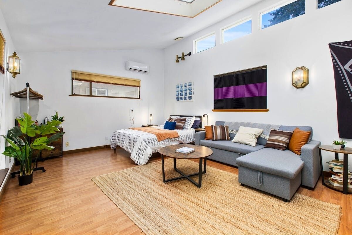 Enter your space through your own private entrance and make yourself at home in our freshly furnished unit. Your space is a 1 bed, 1 bath studio complete with a living area with a sleeper sofa (full-size that can sleep 1-2 smaller people), convenient kitchenette (includes a mini-fridge, microwave, electric kettle, coffee maker & dishes/silverware!), desk, washer/dryer, patio, & much more!