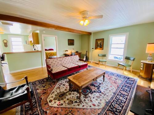 Relax and unwind at the Loft. Picturesque views, great light, cozy cabin feel, personal record player with vinyls, strong coffee for the mornings and more! Brand new mini splits!! This location is ideal as it just a short walk to Main St—close enough to walk to everything and tucked far enough away that it is a wonderfully quiet getaway space. Incredible stargazing and views from the balcony.