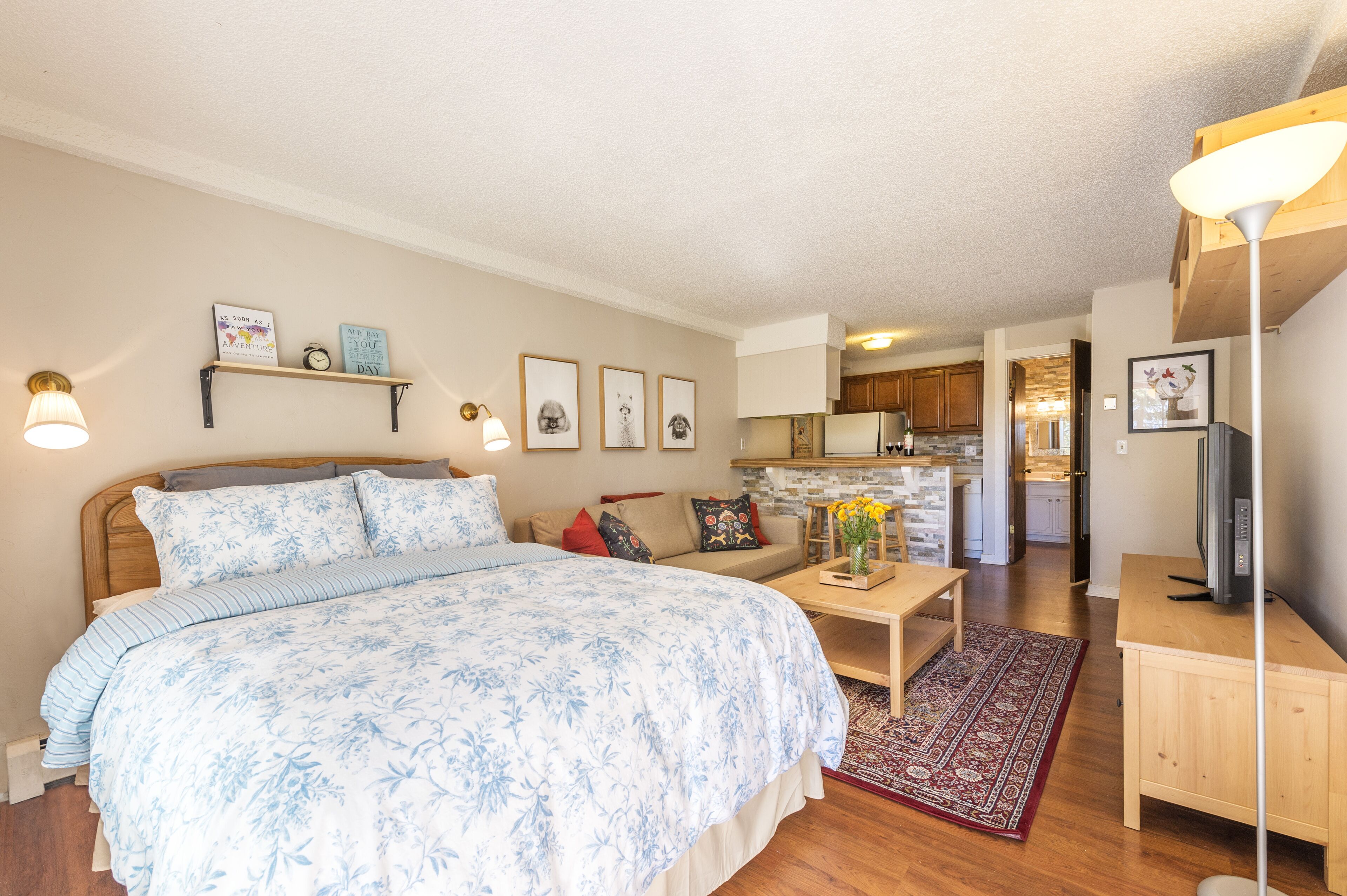 Two bedroom condo for 4 people. One private bedroom with Queen and one semi-private open loft 10x10 bedroom with a Full bed, accessible by fixed wooden ladder.