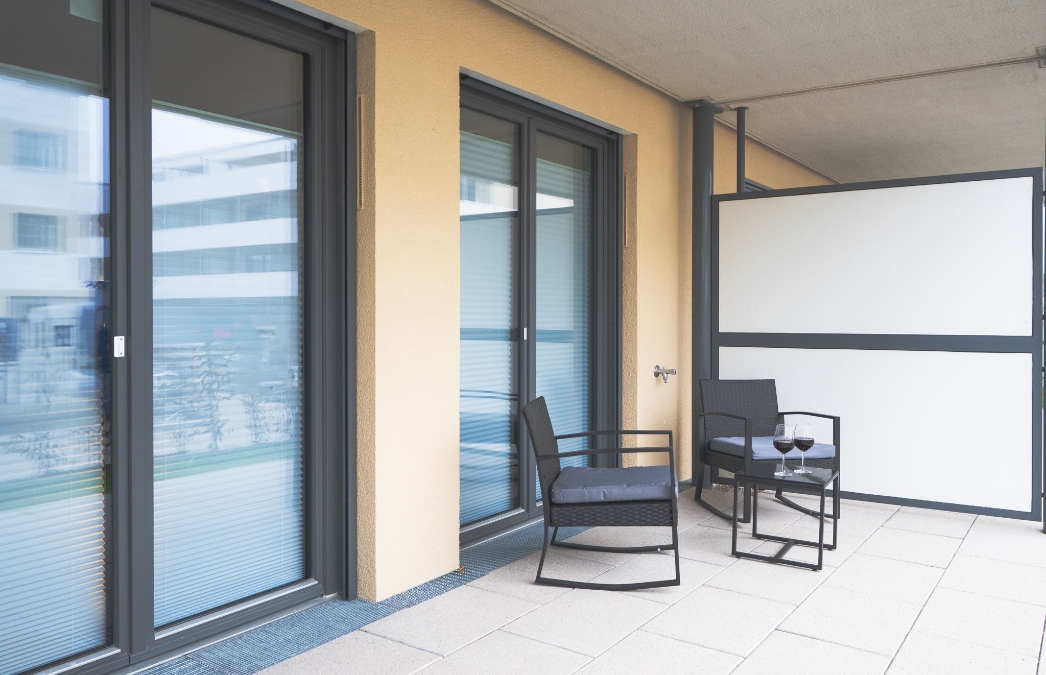 The balcony is ideal for sunny days and has seating and an awning that can be extended.