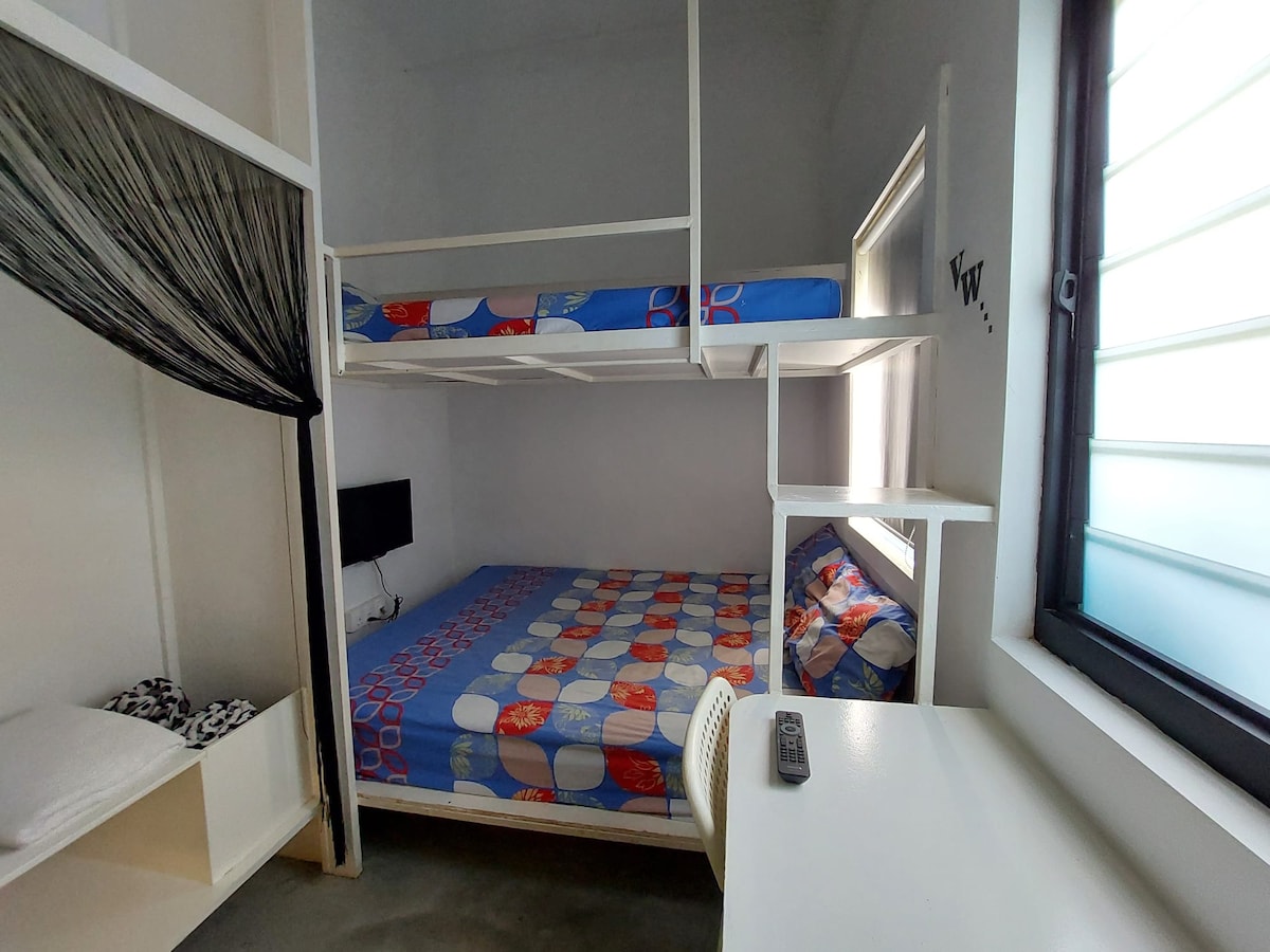 This booking is for the 1 private bedroom in the shared apartment. The room comes with Bunk bed (queen and single size upper bunk), AirCon, TV. Mini-fridge, WiFi and fresh linens, towels. The rooms are compact, each room is able to host 2 adults maximum. There is no kitchen/cooking facilities.
