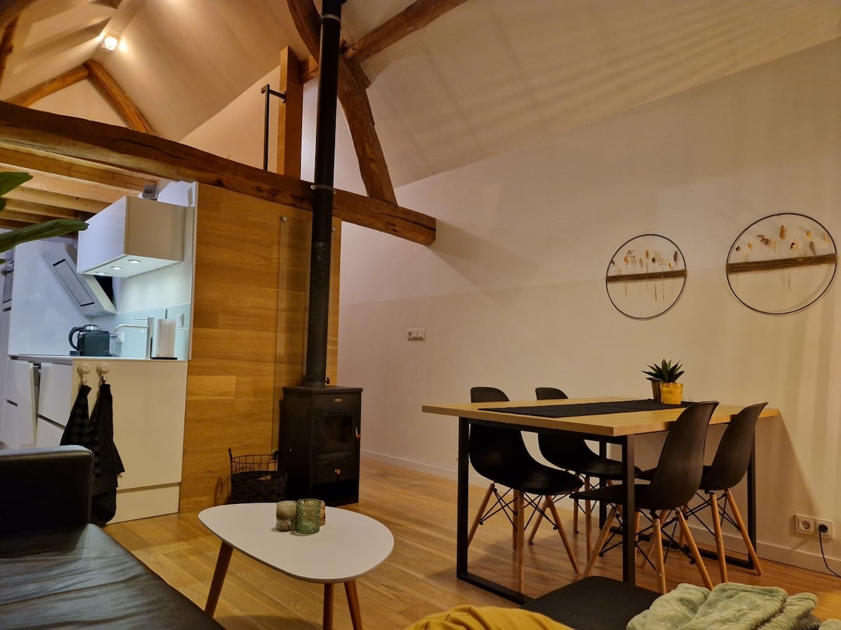 within walking distance at the edge of town sittard is this cozy cottage with loft. Take a walk through the city park or enjoy the rustic old town with the cozy restaurants. The beautiful hillside of Valkenburg, Maastricht to the tri-border point in vaals are a 20-minute drive away. A bottle of wine and logs for the fireplace are included. Enjoy the tranquility of the self-contained cottage with all privacy and private parking.