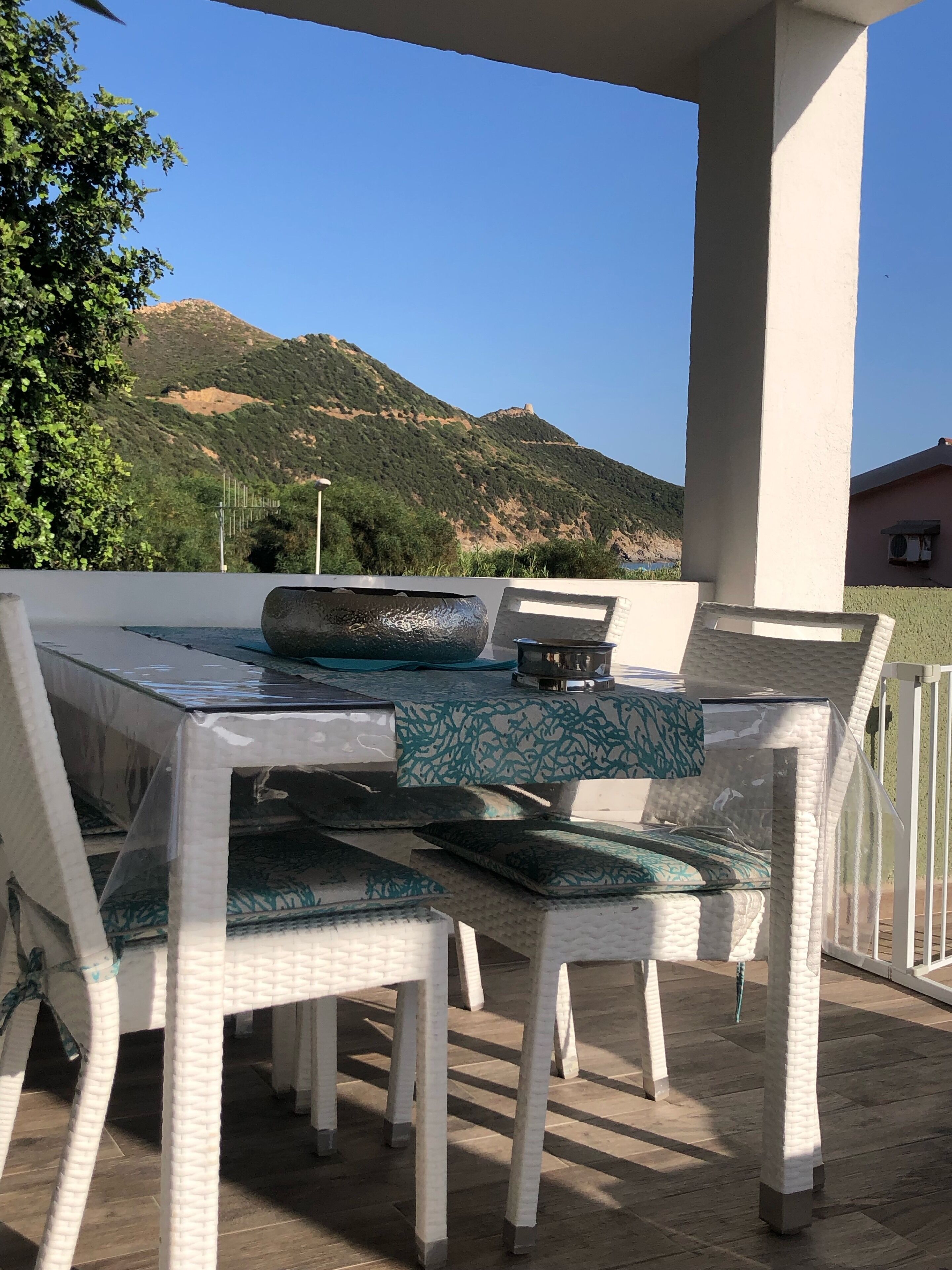 The apartment is not even 100m from the beautiful beach of Solanas. You can get there through a private and exclusive street in a few condominiums. It is located on the first floor, equipped with a cool veranda, inside you will find everything you need: bed linen, bath linen, kitchen linen, as well as beach equipment: umbrellas, sunbeds, games and even a SUP.