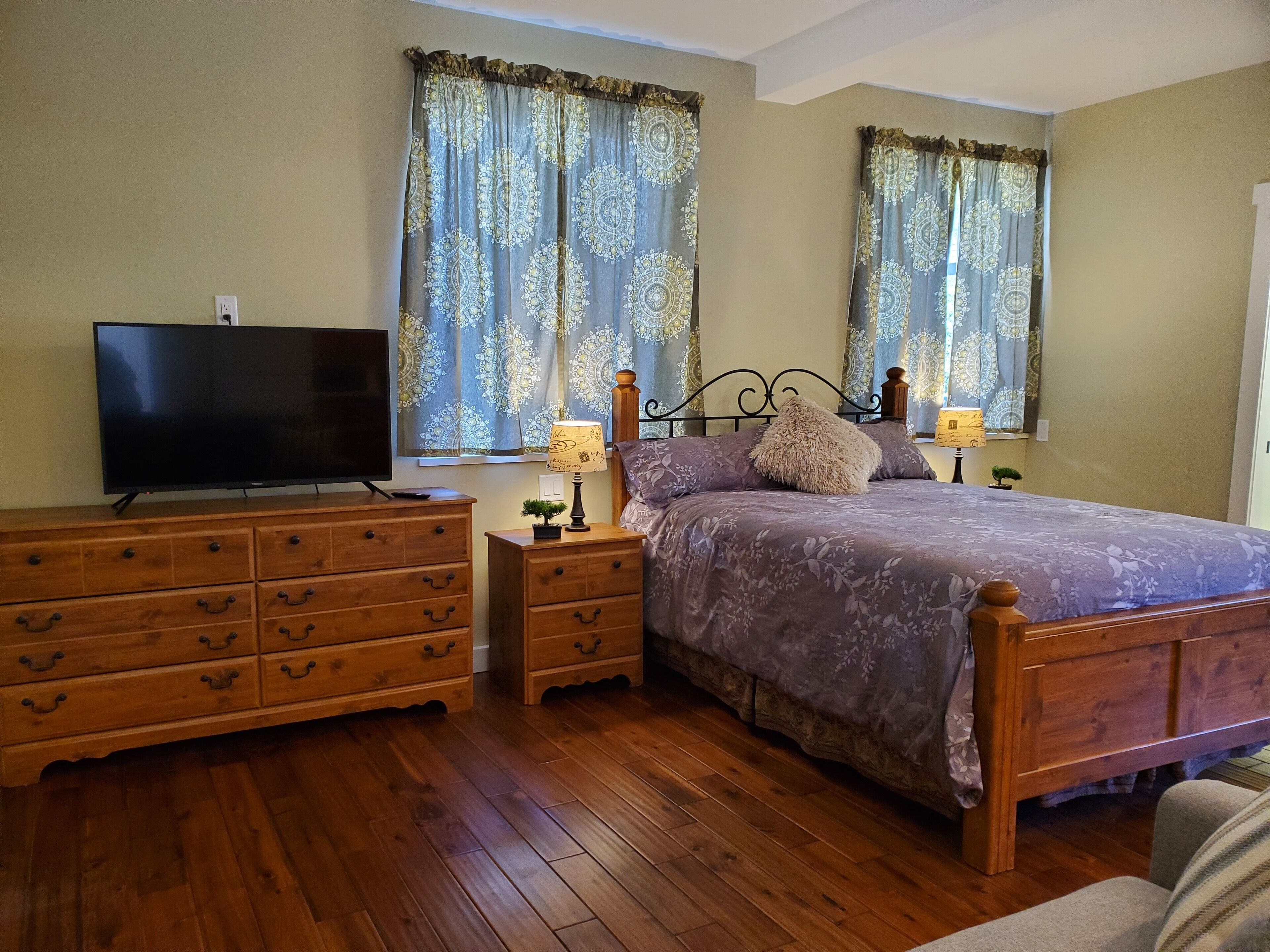 Bedroom: queen memory foam bed. dresser, night table. Suite sleeps two people sharing.