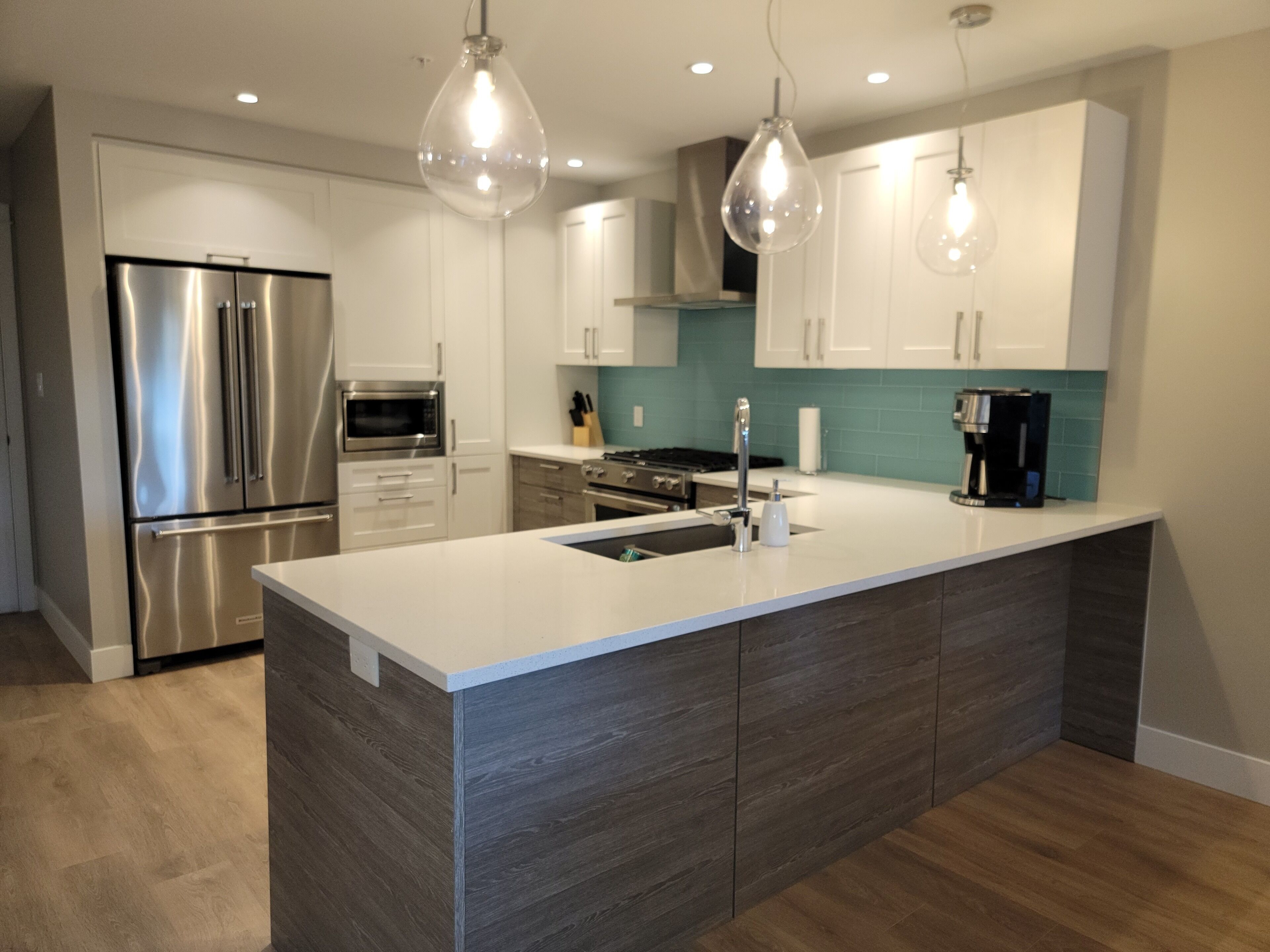 Perfect for 2–4 guests, the suite features two newly constructed bedrooms with queen-sized beds. The kitchen boasts quartz countertops and is fully equipped with a Keurig, convection oven/toaster, microwave, full-sized fridge, and all cookware needed to create a delicious meal.