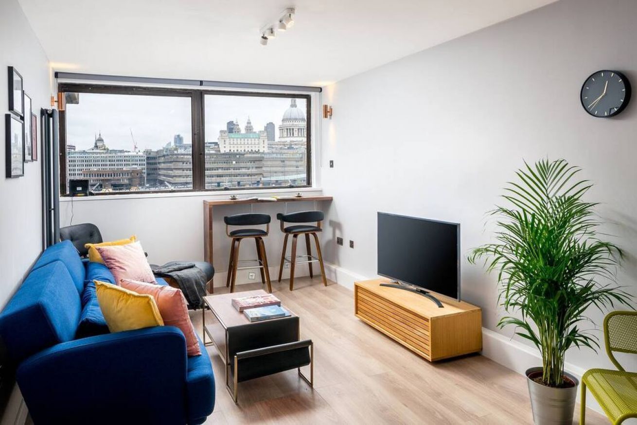 One bed flat , fully equipped, contemporary style in the City of London next to the Tate modern, near the millennium bridge and Shakespeare globe on the South Bank overlooking St Pauls cathedral. Excellent transport nearby