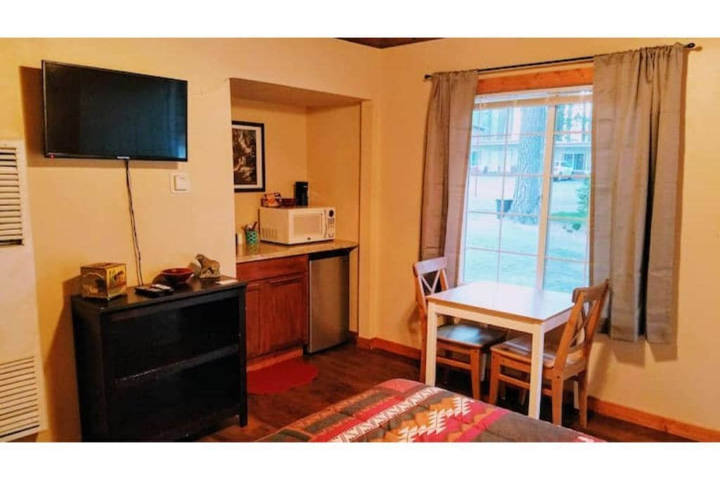 Enjoy a relaxing stay at The Washoe Lodge in this pet-friendly room with a queen bed and a kitchenette. Whether venturing into the outdoors or kicking back to unwind, this room offers the perfect blend of comfort and convenience.