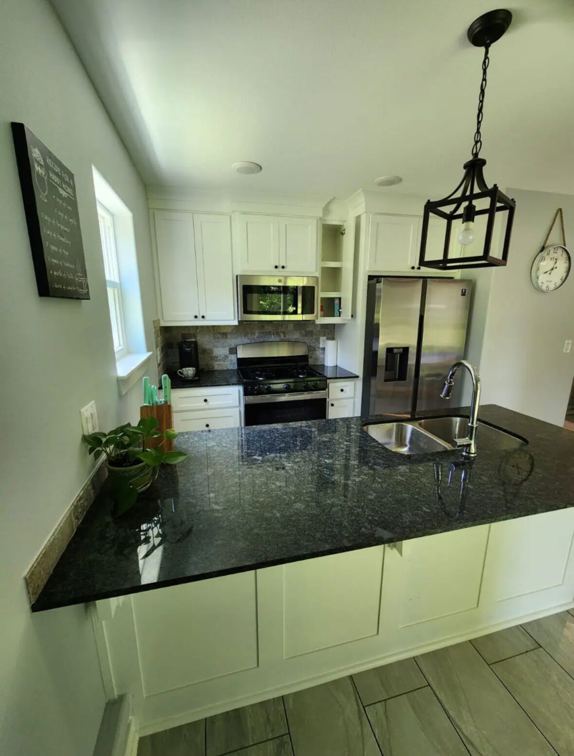 Welcome to our charming and private retreat located on a dead end street in Springdale, Arkansas. Enjoy an open concept kitchen and living area in a completely remodeled house with new appliances, new furniture, and ample seating for all guests. In the three bedrooms you will find a king bed in the master, a queen size bed in one guest room and a set of bunk beds in a another guest room. The master bedroom has an attached bath with dual vanity and sinks. The outdoor space is cozy and perfect for morning coffee or an evening beverage.