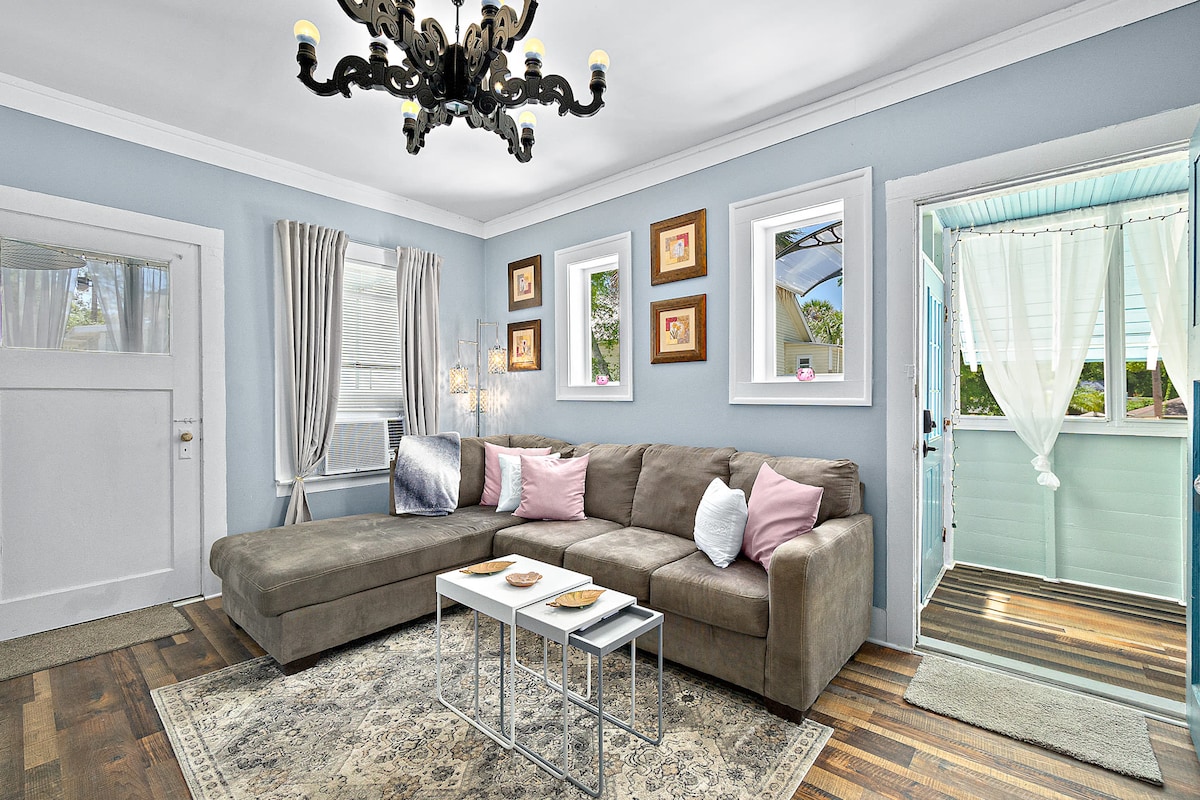 Welcome to your iconic "beach" pad! This first-floor studio apartment with a KING BED, bath, and small kitchenette (no spices; Close to grocery stores) perfect for your St. Augustine getaway. It is located in a triplex in the charming Fullerwood neighborhood, about 1 mile from the old city gates and 2 miles from the beach, close to trolleys, the Fountain of Youth, the Old Jail, small shops, and coffee houses. Free parking on the property for one car.
