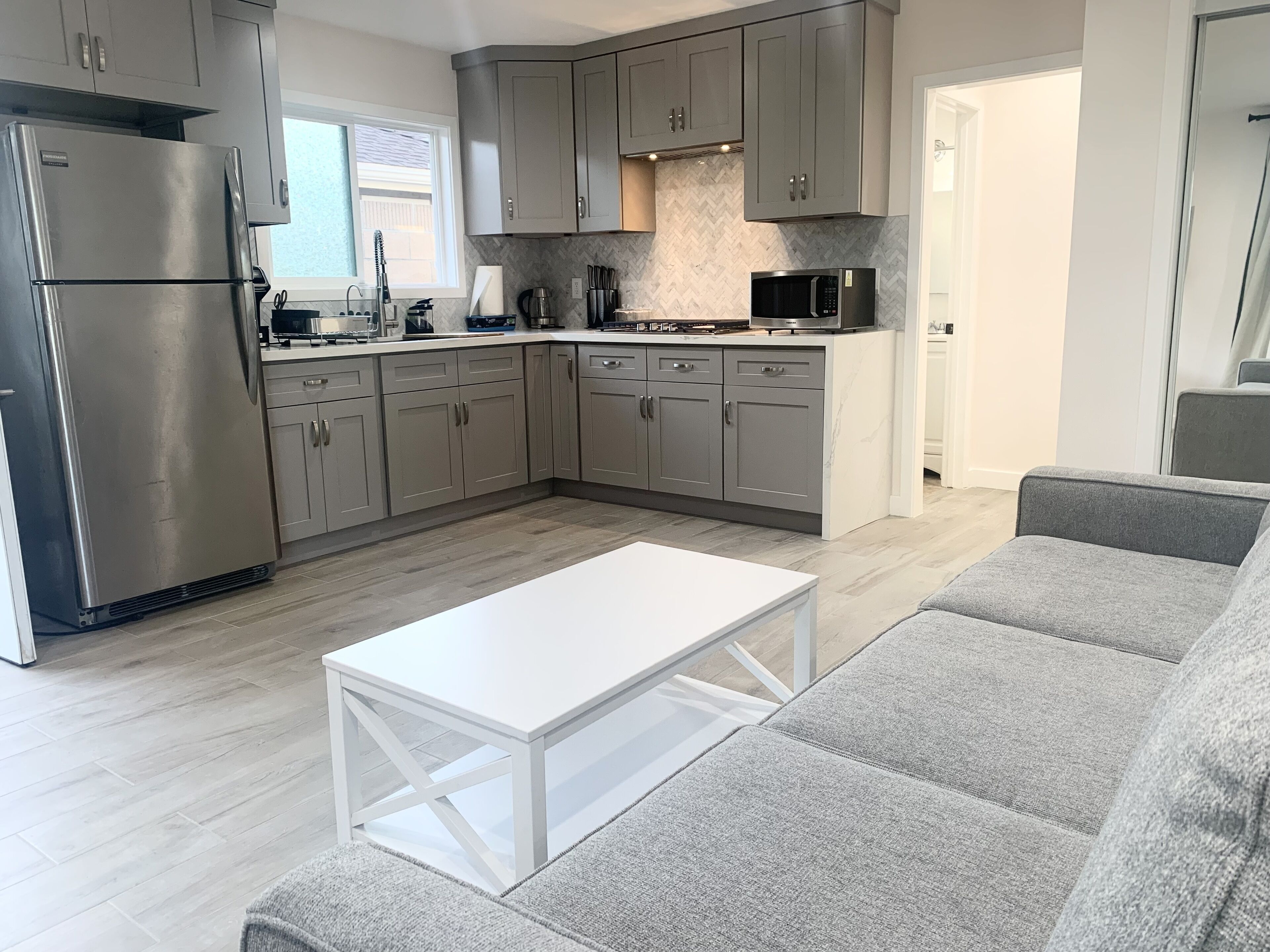 - "It was a very clean, quit and safe location to stay on our short SoCal vacation! Thank you:)" - "Good service. NICE and CLEAN place." - "Was really impressed with the space provided for me and my 2 toddler boys on this property. We had more than enough room to sleep with the bed and pull out couch bed. The kitchenette area was well organized and stocked with all necessary utensils and electric warmer. The refrigerator was the right size the microwave was great. My kids enjoyed the television equipped with both internet tv and cable tv. The bathroom was great too. The shower had amazing water pressure and was it was very clean with towels. The closet space was perfect and all the storage space was meticulously put together. The decorations, wall stamps, inspirational quotes, and the whole vibe of the space really felt like I was home. And yes, thank you for always having the heater on. We were always warm and comfortable when it was either raining or simply cold outside. This was definitely a home away from home. We enjoyed our little oasis for the month of January and I would highly recommend anyone to this place. Oh, don't forget the outside washer/dryer for your convenience of use. Lastly, the landlords, Reggie and Brittney, you guys are so sweet and supportive. Thanks for answering all my questions and helping me when I needed help. You guys are awesome! Thank you!"