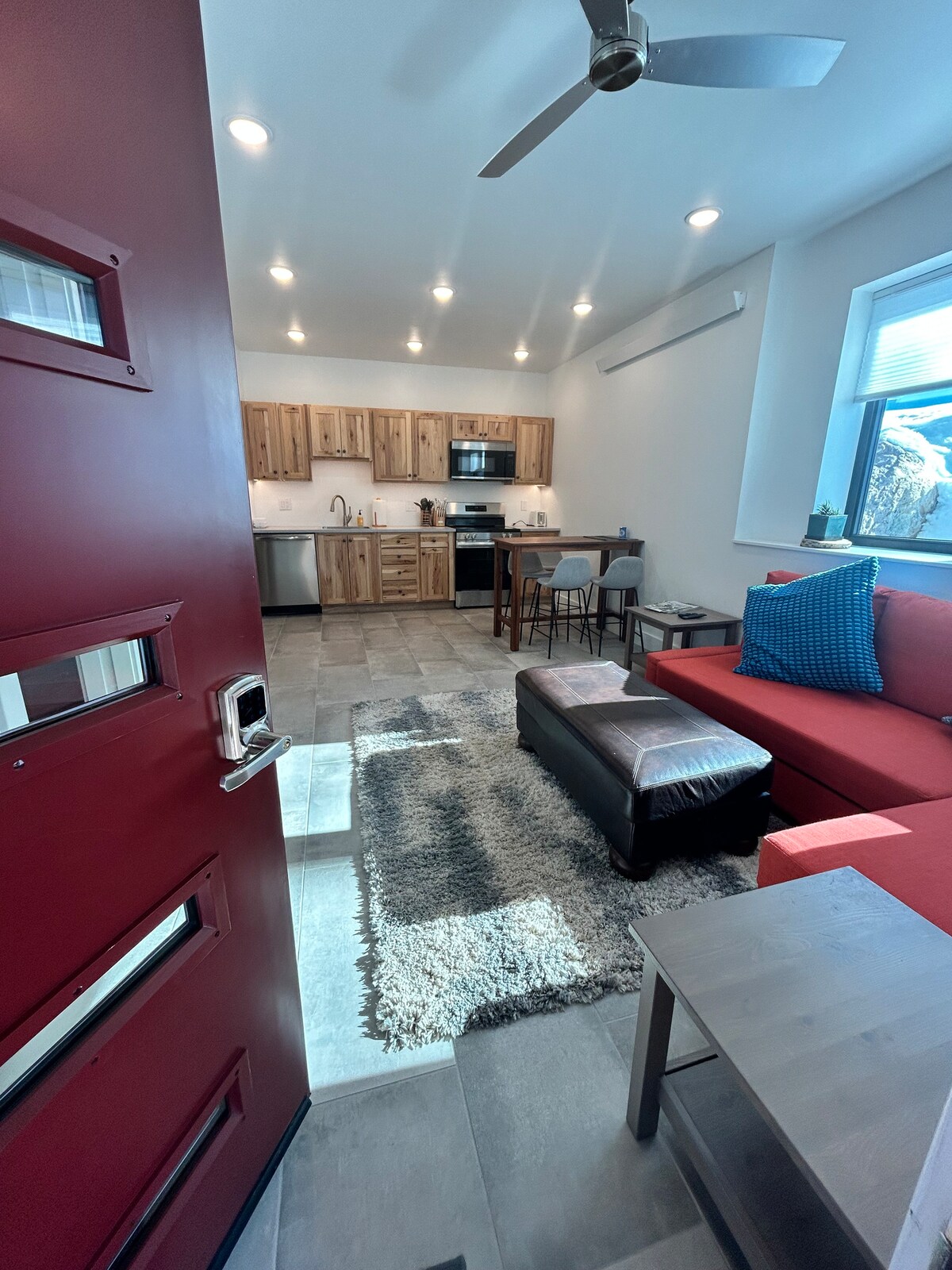 Enjoy an alpine getaway in patio-level unit of bright & modern chalet. This smaller unit is perfect for couple, 2 friends or family w/ small children. Mountain views from windows & patio are yours to enjoy.