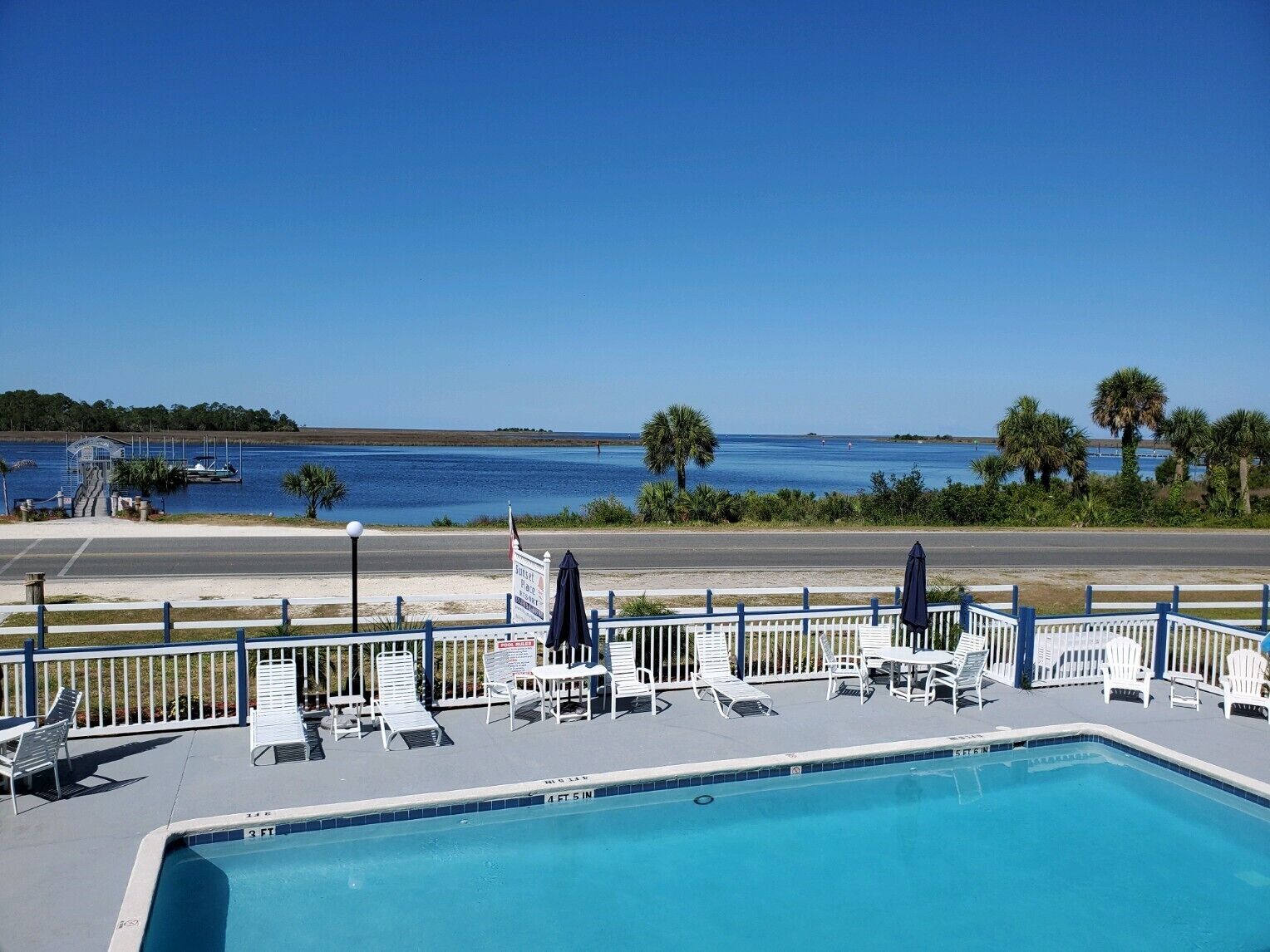 Studio apartment perfect for a get away for fishing, nature watching or a scalloping adventure. This room is on the second floor with a private entrance. Enjoy all the amenities of the Hotel: swimming pool, fire pit, WiFi, picnic area and dockage available for your boat. Free parking and pet friendly. Optional housekeeping services, fresh towels and coffee replacements upon request.
