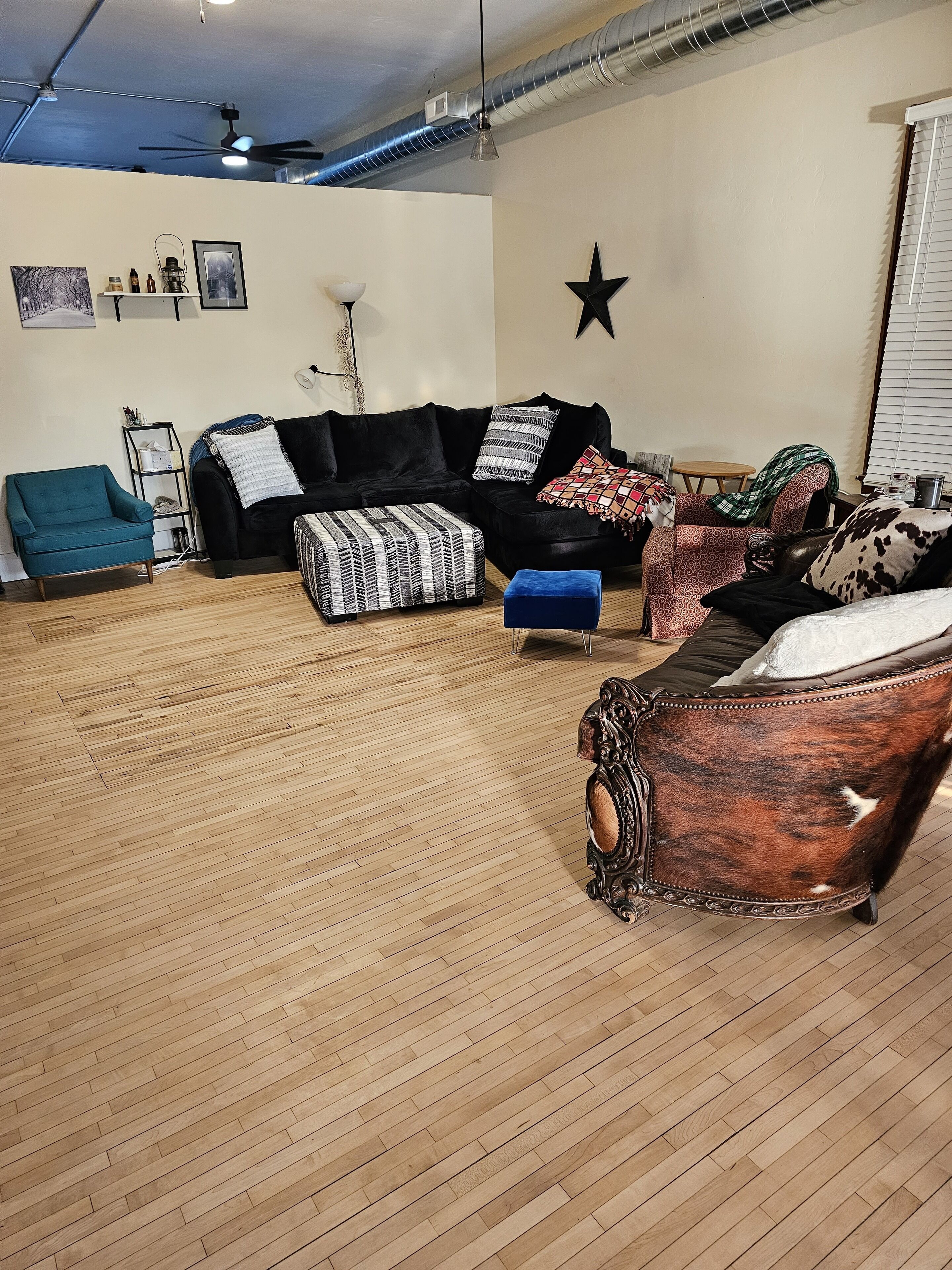 Ever wanted to see what goes on in a commercial bakery? Imagine waking to the aroma of baking bread and cinnamon rolls? Get a bird's eye view into the kitchen of the Village Hive Bakery Kitchen while staying in the newly renovated "flatlet". Salvaged & repurposed building supplies used to create a unique studio apartment above the bakery retail. Guests can enjoy the retail farmhouse table and comfortable seating space by the Main Street picture window. Cooking/baking classes available.