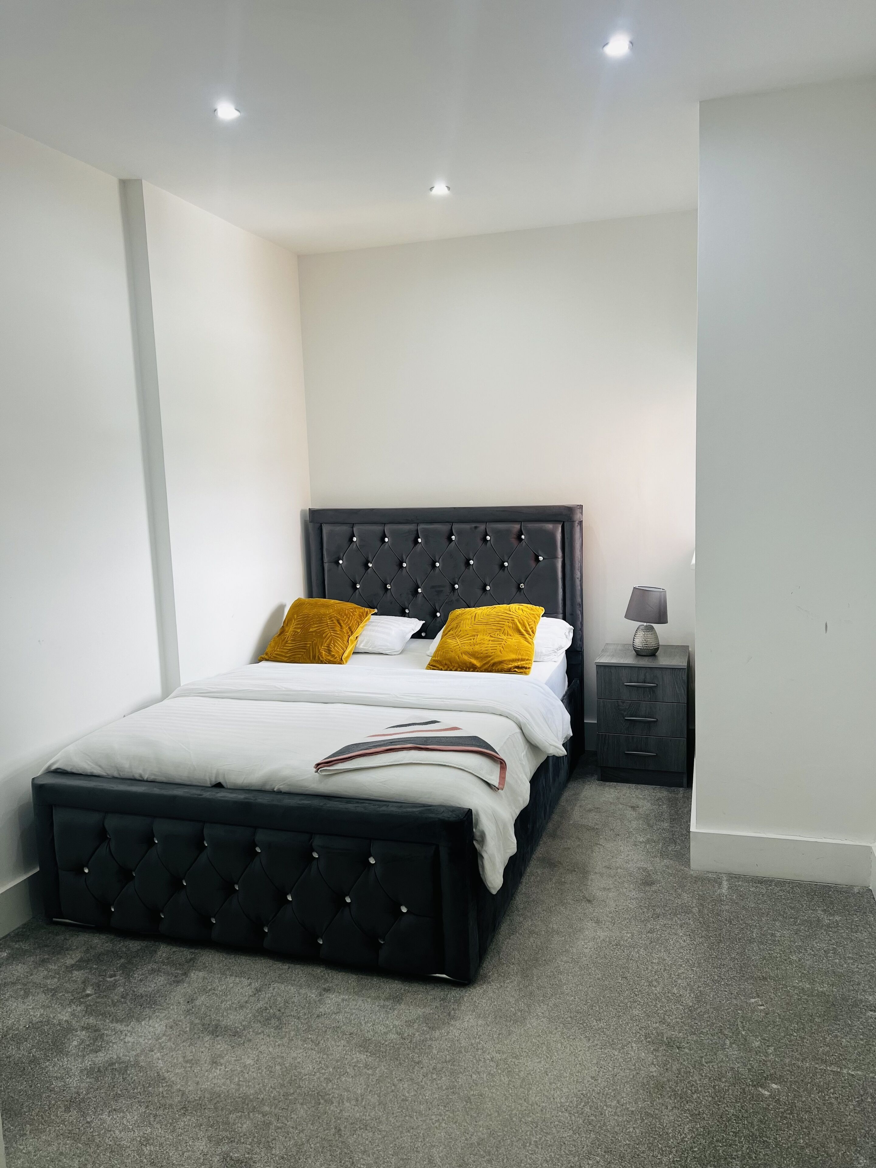 This flat is ideal for solo travellers, couples, or small families exploring Greater Manchester. It features a spacious living area with a comfortable sofa and flat-screen TV. The fully equipped kitchen has modern appliances and offers complimentary teas and coffees. A plush double bed and ample storage ensure a comfortable stay. The modern bathroom includes a shower, toilet, sink, and complimentary toiletries. High-speed Wi-Fi and a dedicated workspace are also provided for remote work.