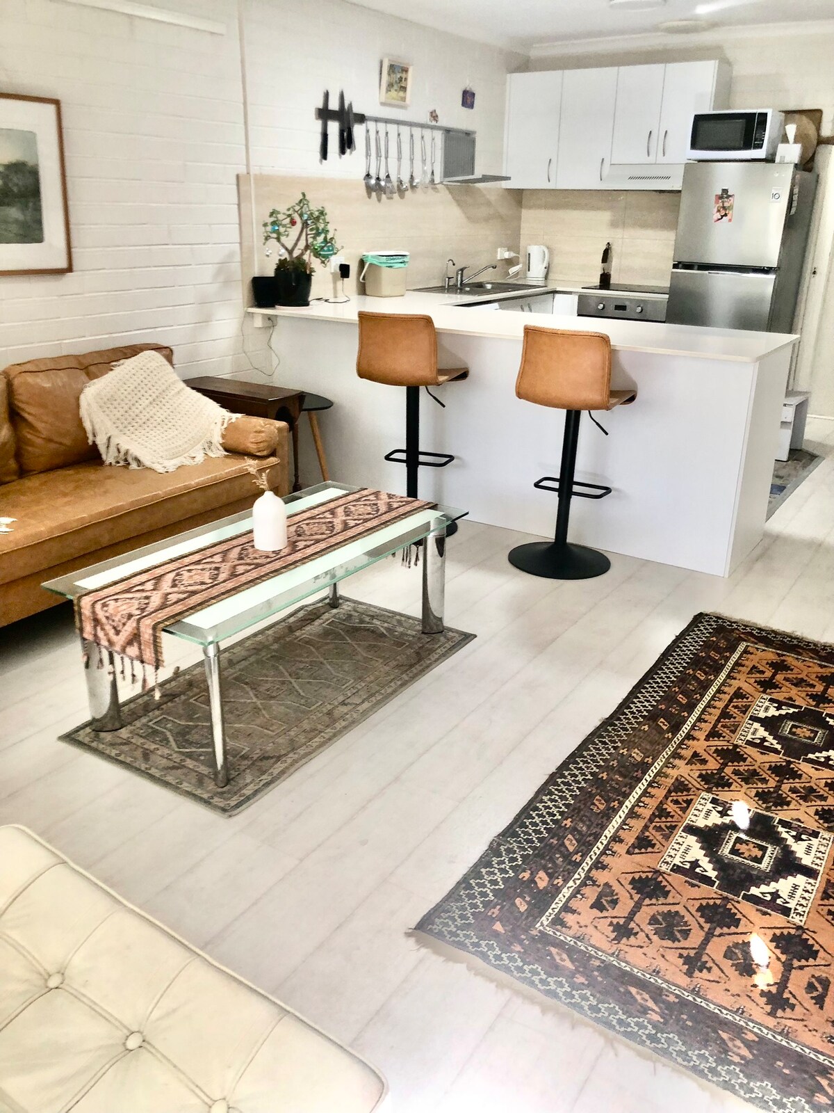- "Newly renovated studio, great location in a suburban setting, easy walk to dog friendly beach, and to local shops. Short drive to Byron and other beach side locations. Ideal for a short stay to explore the area." - "Absolutely loved staying at Aladdin’s and Simon was an incredible host. The home was beautiful and the location was exactly what you want on a holiday. Hoping I’ll be back. " - "Very relaxing stay in a stylish, bright and clean accommodation.We loved it."
