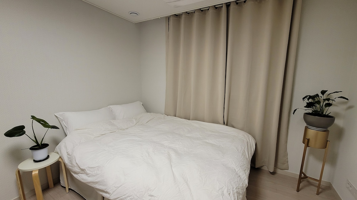You will use one private room and one bathroom in a new 30-pyeong apartment located in Sanseong Station near Wirye, Seongnam. (Kitchen, living room not available)