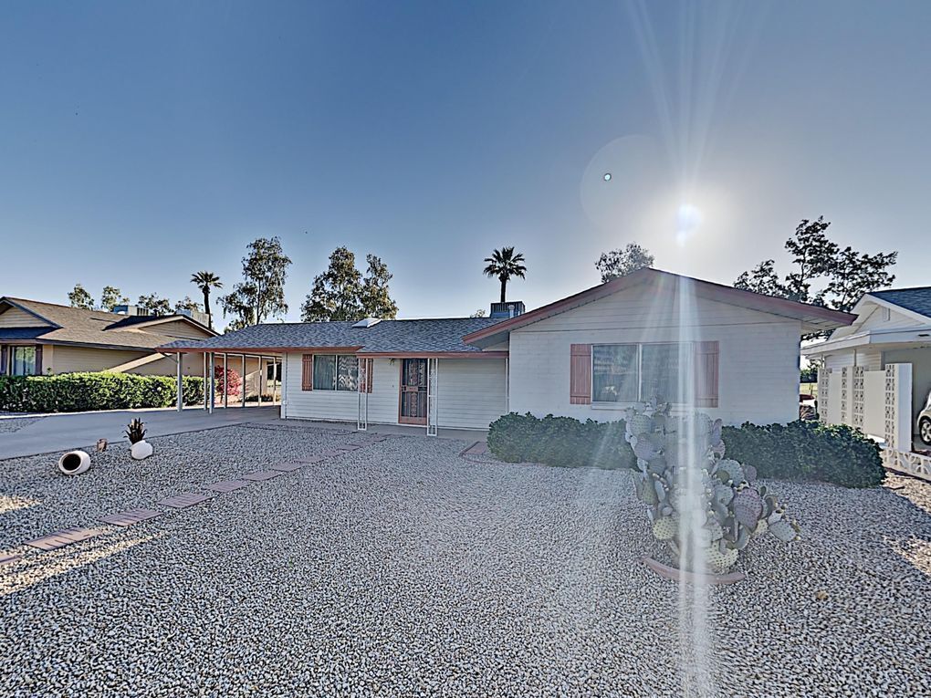 Extra clean and neat 2 bedroom 2 bath fully furnished home in Sun City, a 55 and older adult community. Large bedrooms with walk-in closets, master has a queen size bed, second bedroom has two twins. Tiled bathrooms, fully appointed kitchen with cook top, oven, refrigerator, and dishwasher. Large storeroom and workshop area, full size washer and dryer. There is a lovely Arizona room for those cool winter evenings with friends, and an oversized one car carport. Available December 1st 2022 - April 30th 2023 NO PETS allowed.'' Houzlet publishes listings on Vrbo; which in turn, allows tenants to instantly rent seasonal rentals. Houzlet’s properties are managed by licensed real estate agents. Although the property is an instant rental, it’s possible there can be another pending application. If the home is not available, we can offer you another suitable option or you can cancel for free.