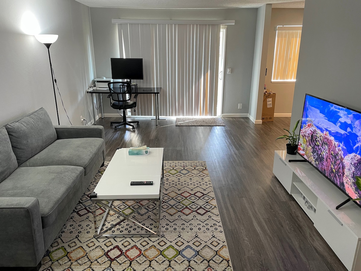 This newly renovated luxury 2b/2b apartment welcomes you to a safe and convenient community in the heart of Silicon Valley, with private, clean & spacious rooms, garden-like backyard, individual AC, 1000Mbps WiFi, gourmet kitchen, in-unit washer/dryer, smart TV with free access to Disney+ & Hulu & ESPN.