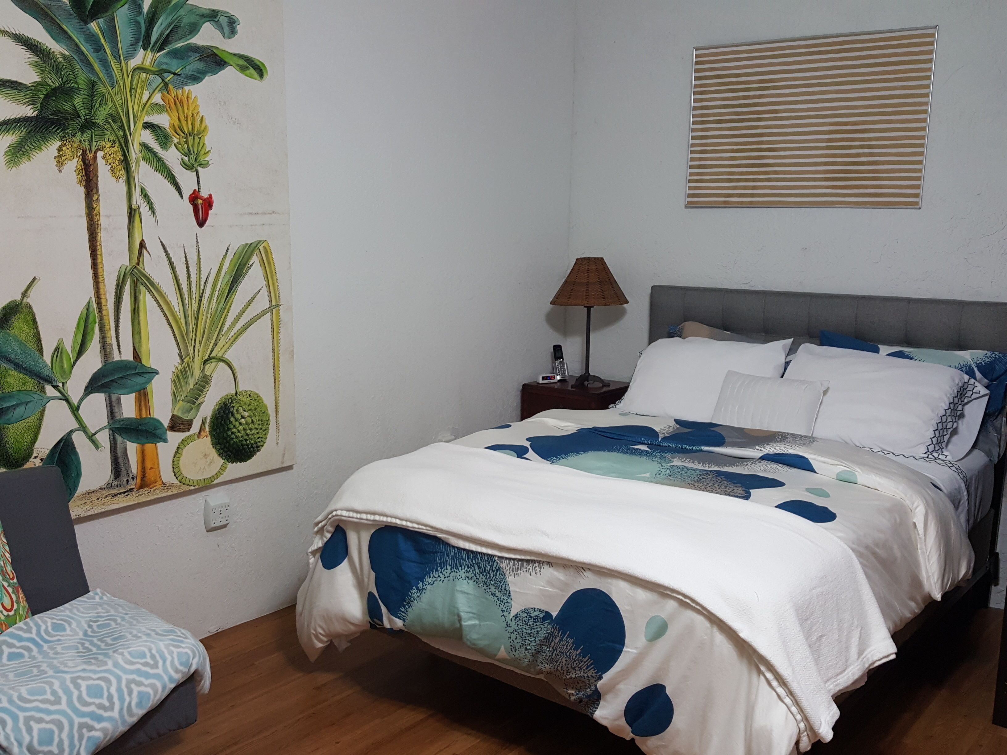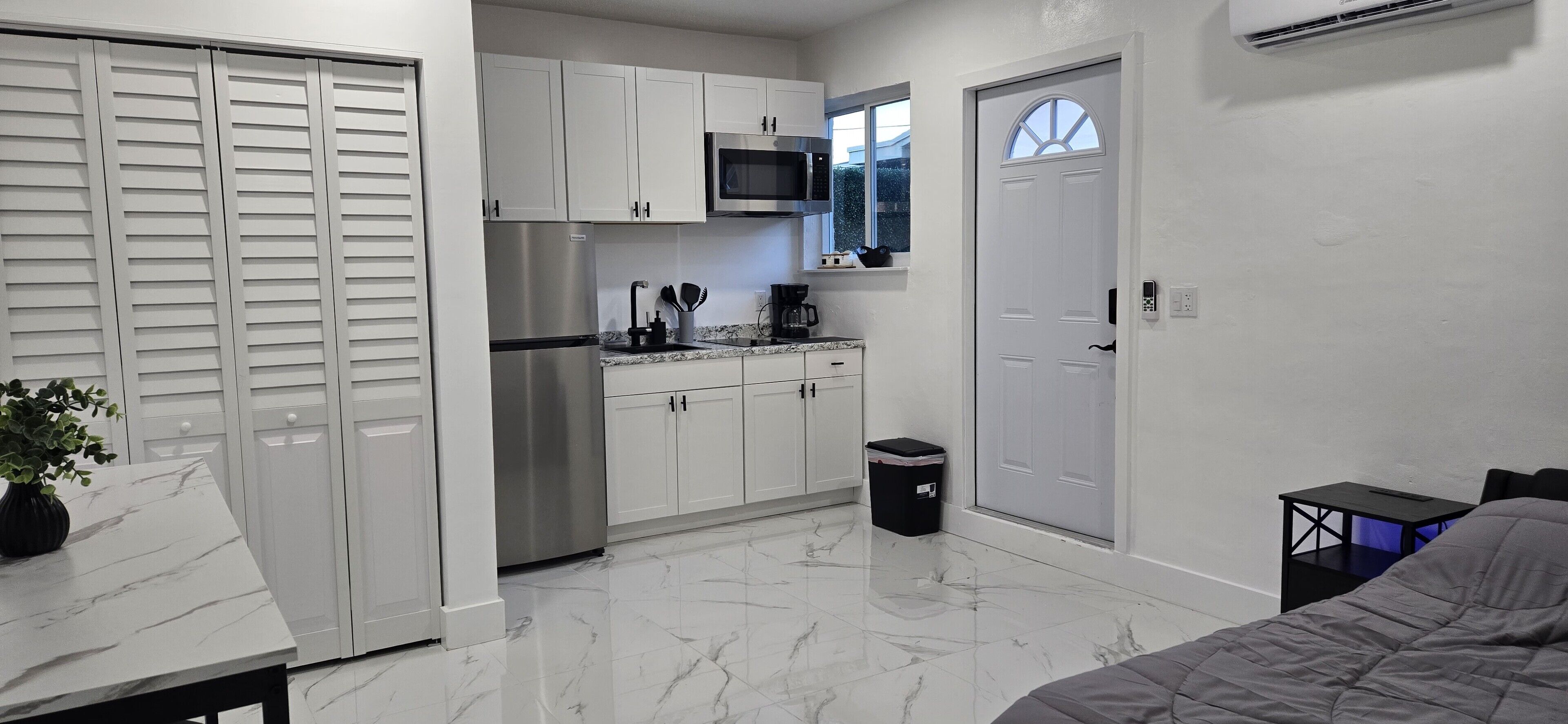 – Your guest area offers everything you need for a pleasant stay at an excellent location, we offer a Kitchenette (large toaster oven, microwave, and mini fridge) One bedroom with bathroom and a living room area with a sofa bed and air mattress (In case you need it) dining table, 55’ TV with "Roku" system including Netflix and regular channels just for you in the living room, and a 32”TV in the room.
