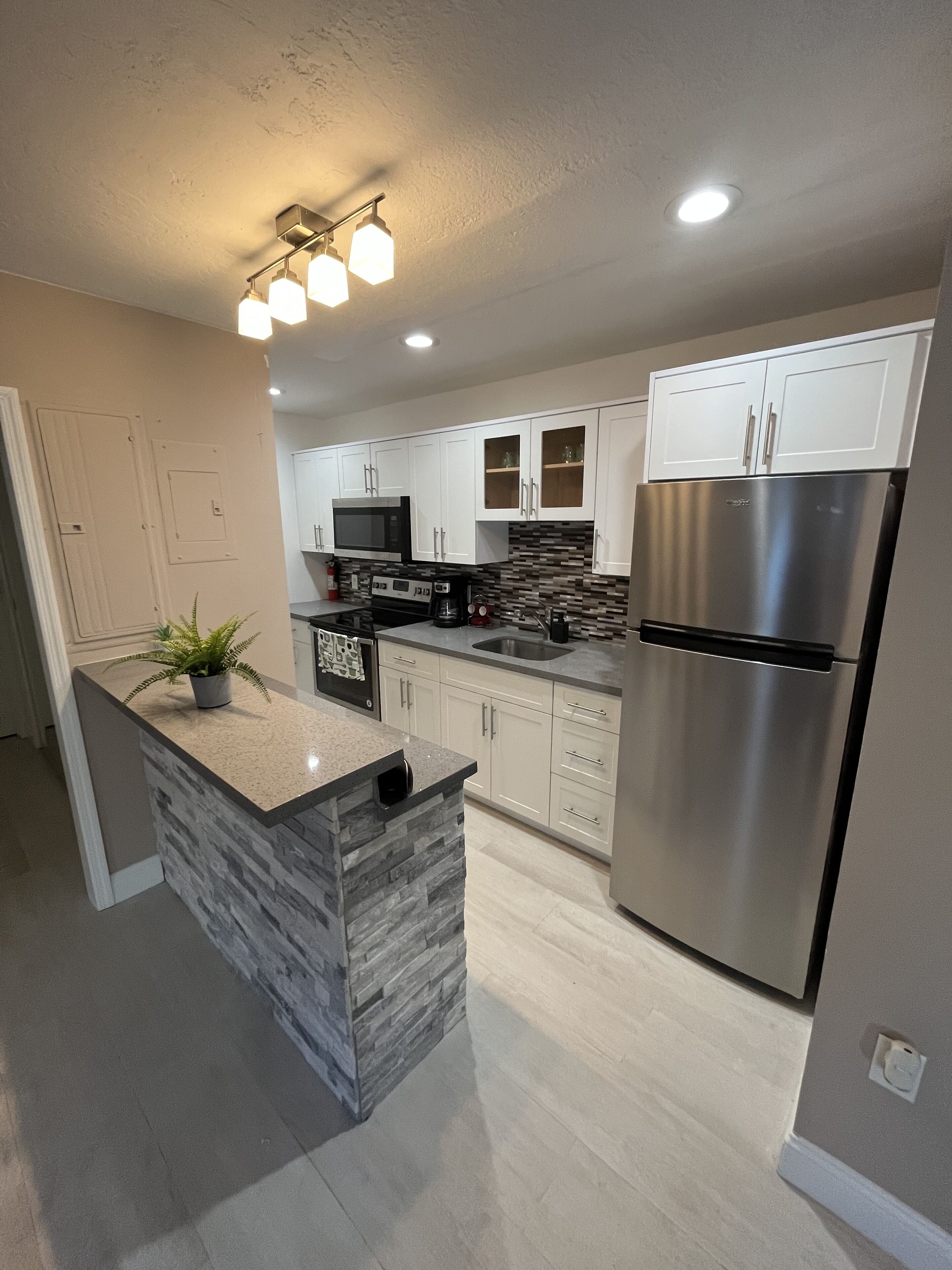 Welcome to your perfect getaway in Sunrise! This spacious, freshly renovated 2-bedroom, 2-bathroom apartment offers comfort, convenience, and style. Enjoy a fully equipped kitchen, flat-screen TVs in every room, complimentary Wi-Fi, and an in-unit washer and dryer.