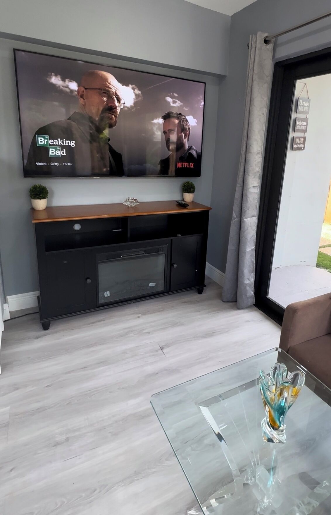 Living Room: Spacious area with a Sofa and a TV, the Sofa turns into Large bed to accommodate additional guest.