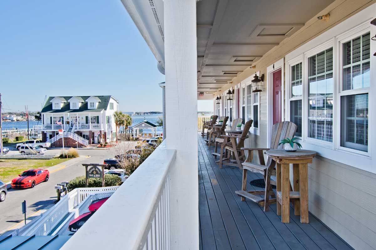 Smell the salt air, enjoy the view, dine at our downstairs Pub & Deli, or leisurely walk to a variety of boutiques, shops, restaurants, or one of Swansboro’s special annual events throughout the year like Arts by the Sea (June) the Mullet Festival (October) and the Christmas Flotilla (December). Summer guests can enjoy free Swanfest concerts every Sunday at 6:30pm and can be enjoyed from the comforts of their front porch.